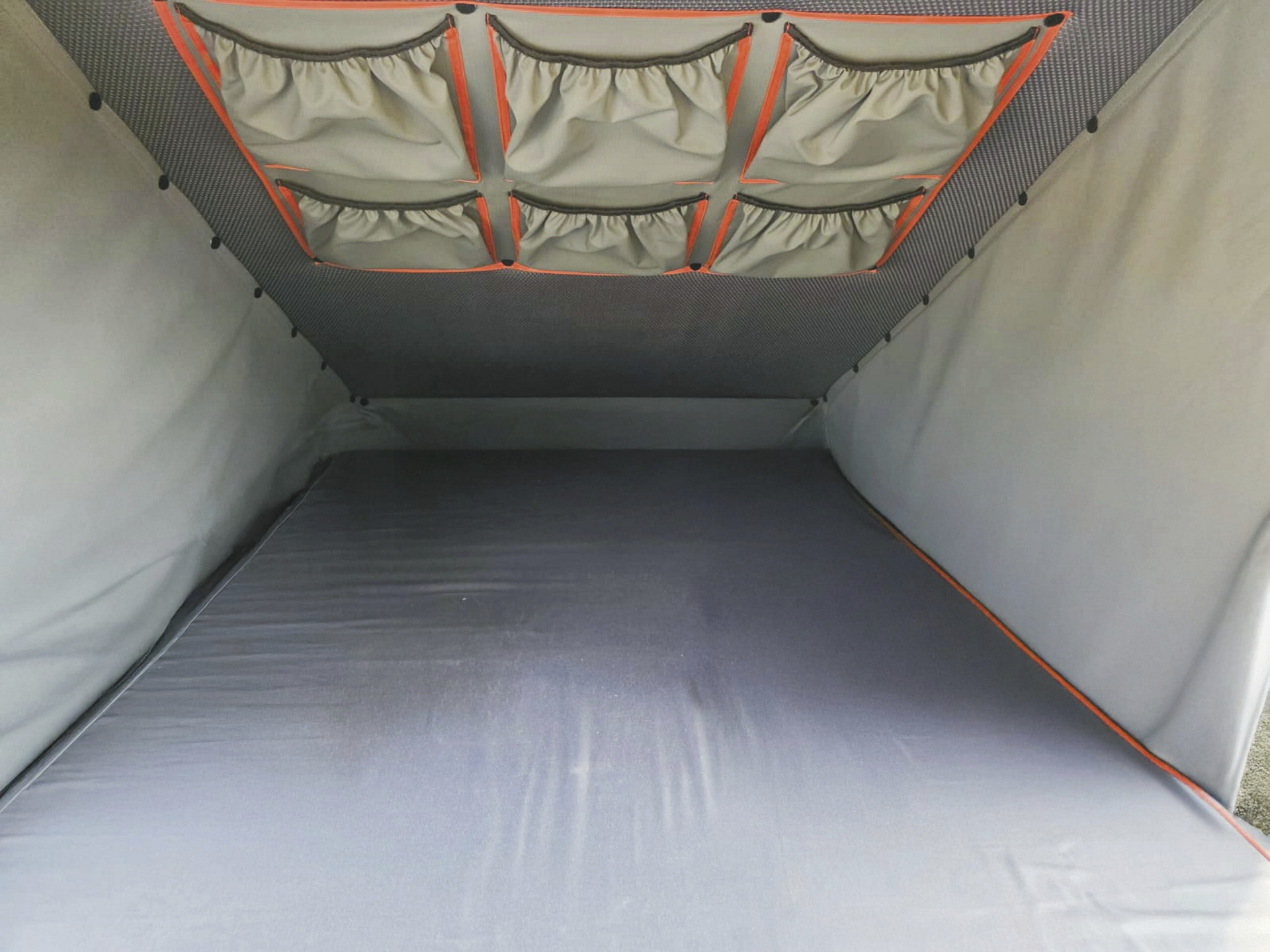 • 1 Doppelbett (2,10 m x 1,30 m) oder 1 Familienbett (2,20 x 2,00 m) im Hubdach.