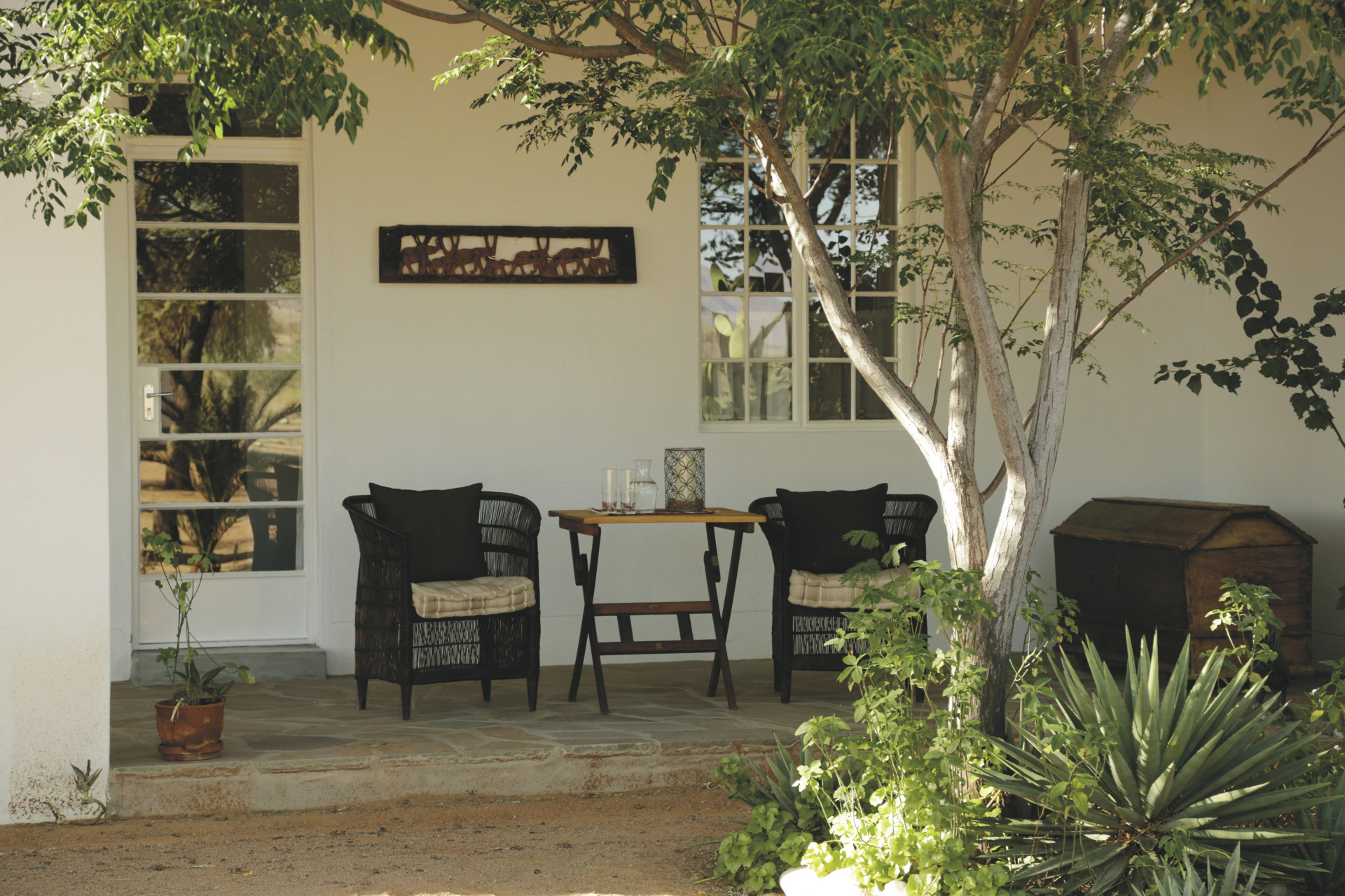 Das hübsche historische Farmhaus von 1903 befindet sich auf einer aktiven Rinderfarm mit großem Wildtierbestand. Das Haupthaus hat eine typisch umlaufende Veranda, sodass immer ein schattiges Plätzchen zu finden ist. Hier oder im gemütlichen Speisezimmer werden kreative, aber landestypische Gerichte serviert, frisches Gemüse und Wildfleisch von der Farm, gerne auch abends vom Grill. Ein kühles Getränk finden Sie in der Honesty Bar. Im schattigen Wüstengarten liegt der Pool, der an heißen Tagen für Erfrischung sorgt. Optionale Aktivitäten: markierte Wanderwege, Farmrundfahrt, Sonnenuntergangsfahrt; ADAC-zertifiziertes Off Road - und Fahrsicherheitstraining. Etwas ganz besonderes ist der Ababis Mountain Trail, eine geführte 2-3-tägige Wanderung durch die Naukluft Berge in kleiner Gruppe mit Übernachtung unter den Sternen.
