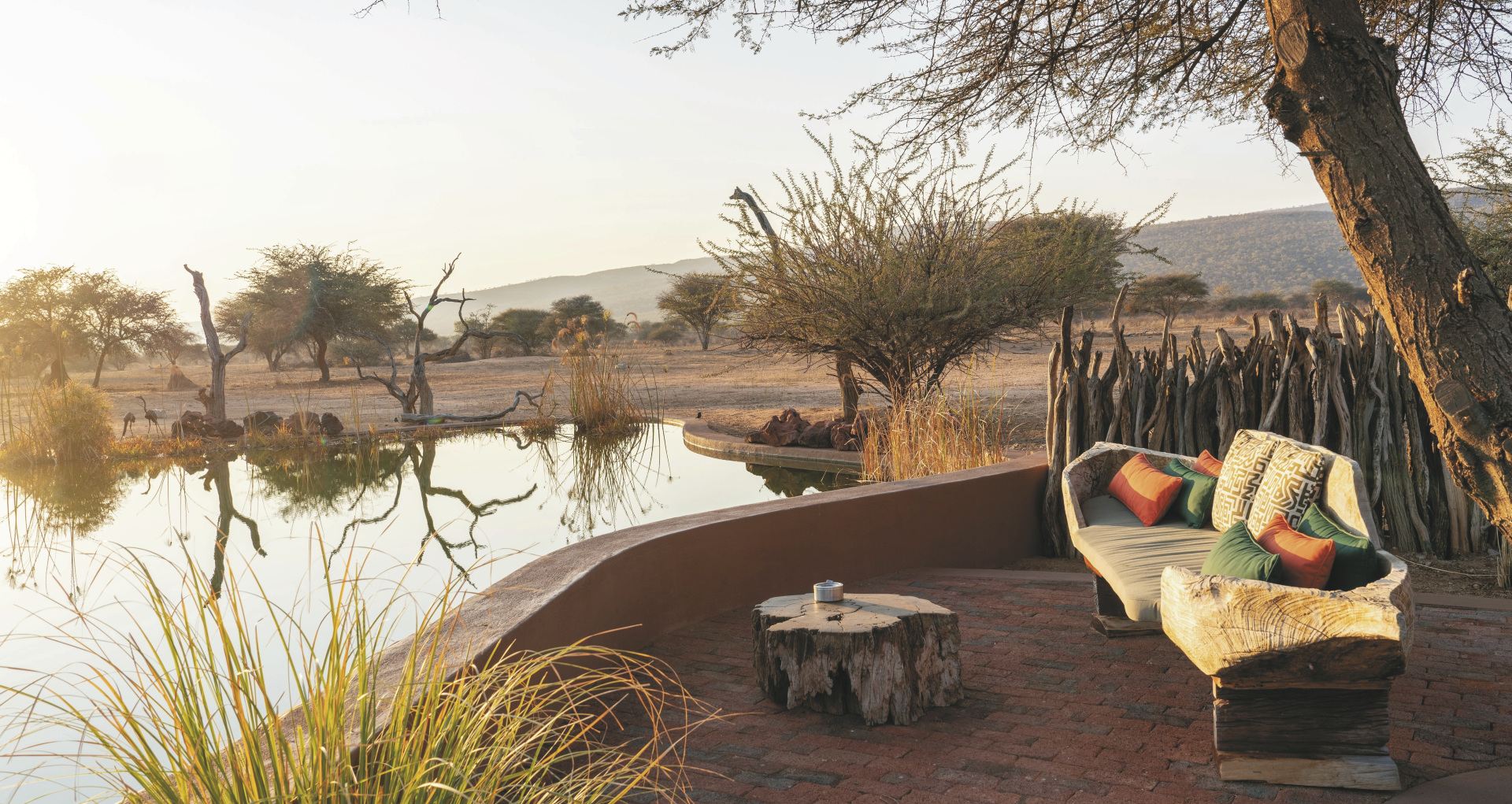 Das sehr persönlich geführte Camp hat einen typischen Safari-Stil. Der Hauptbereich ist offen gestaltet und gibt den Blick auf die Landschaft und das gut besuchte Wasserloch frei. Hier nehmen Sie Ihre Mahlzeiten ein, finden ein leckeres Getränk an der Bar oder treffen auf andere Gäste in der Lounge vorm Kamin oder rund um die Feuerstelle. Zwischen den Aktivitäten genießen Sie ruhige Stunden am Pool.