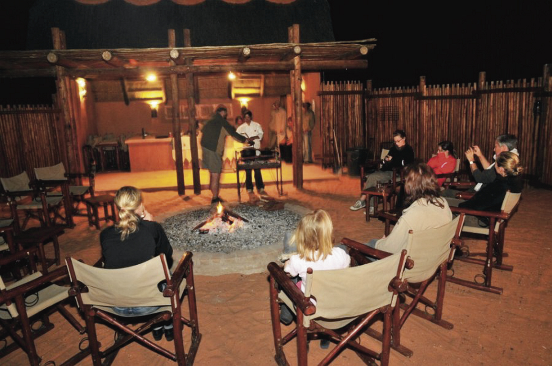 Die erste private Lodge im Nationalpark geführt von den San bietet allen voran Ruhe, Abgeschiedenheit und Authentizität in einer atemberaubenden Landschaft. Im zentralen Bereich finden Sie neben dem Speisezimmer und dem Barbereich eine gemütliche Lounge mit Kamin - in der Wüste kann es im Winter nachts kalt werden! Links und rechts davon, über Holzstege erreichbar, reihen sich die Gästechalets ans Hauptgebäude. Zu allen Tageszeiten ist die große Aussichtsterrasse ein beliebter Platz. Am Tag kann man die Landschaft genießen und die Tiere an der Wasserstelle beobachten, am Abend die Sternen am Firmament zählen. Ein kleiner Pool mit Sonnenliegen bringt an heißen Tagen Erfrischung. Die Lodge ist ausgestattet mit handgefertigten Möbeln und Kunsthandwerk aus der Region, einiges davon kann im Shop auch als Souvenir erworben werden. Bei Einbruch der Dunkelheit trifft man sich zum Plausch in der Boma je nach Jahreszeit mit oder ohne wärmendes Feuer. Eingeschlossene Aktivitäten: Pirschfahrt & Buschwanderungen, auf denen Ihnen viel über das Leben und Überleben der San in dieser unwirklichen Region nahegebracht wird, Besuch der Kunsthandwerksstätte der San. Die Lodge wird stundenweise über einen Generator mit Strom versorgt. Suchen Sie am Abend die Gesellschaft der Einheimischen, sie wissen viel über den Sternenhimmel und in ihre Kultur gibt es zahlreiche Erzählungen zu diesem Thema.