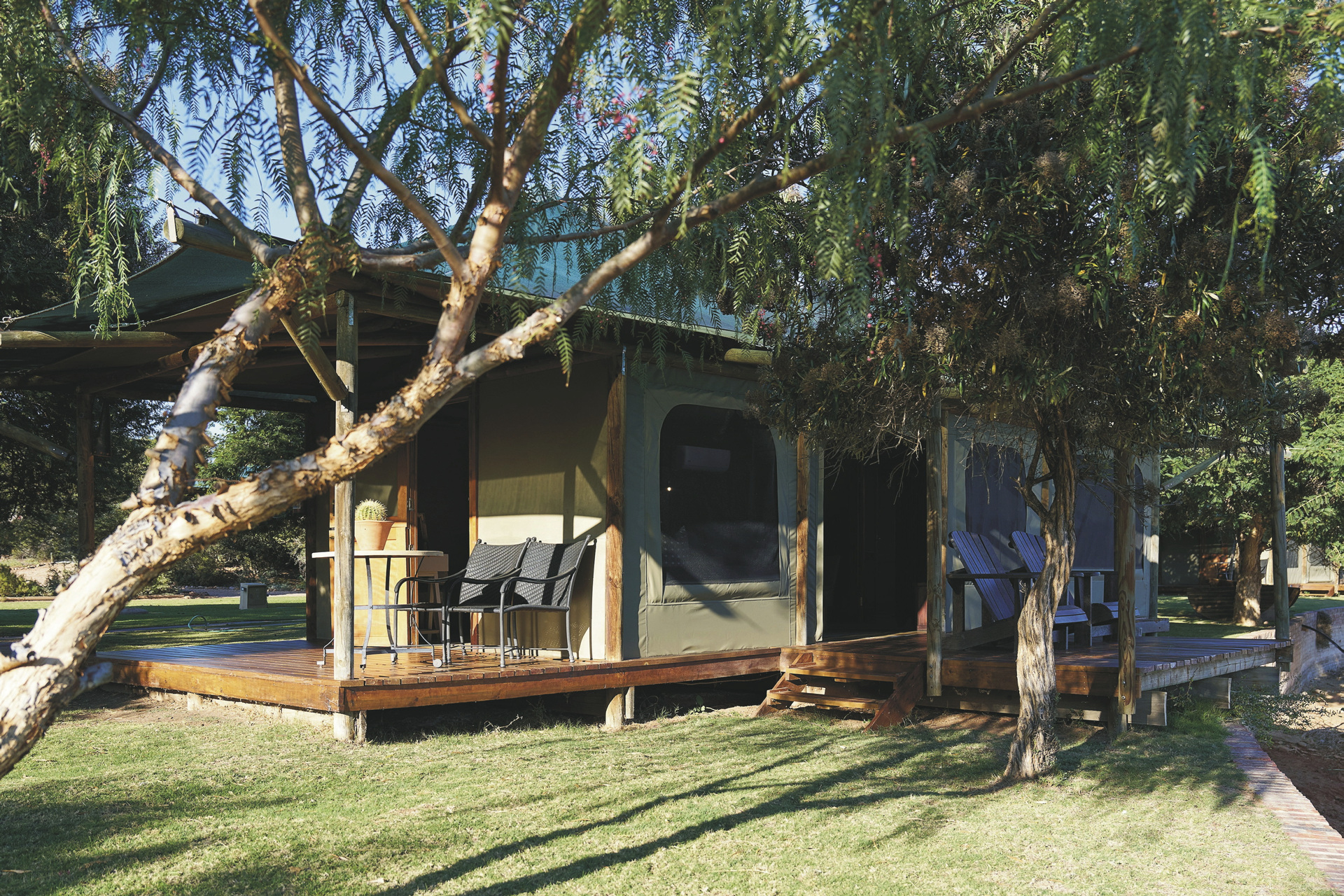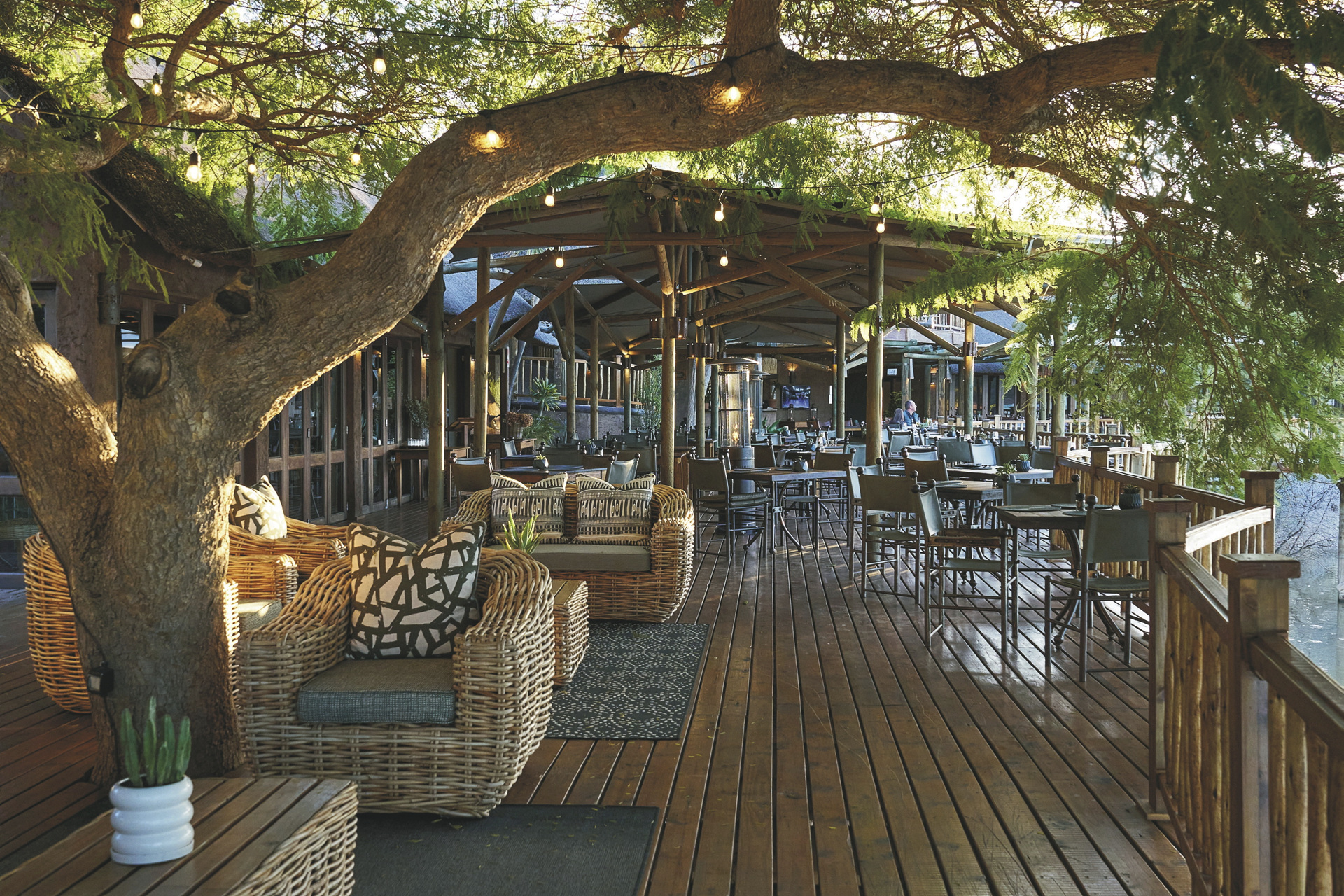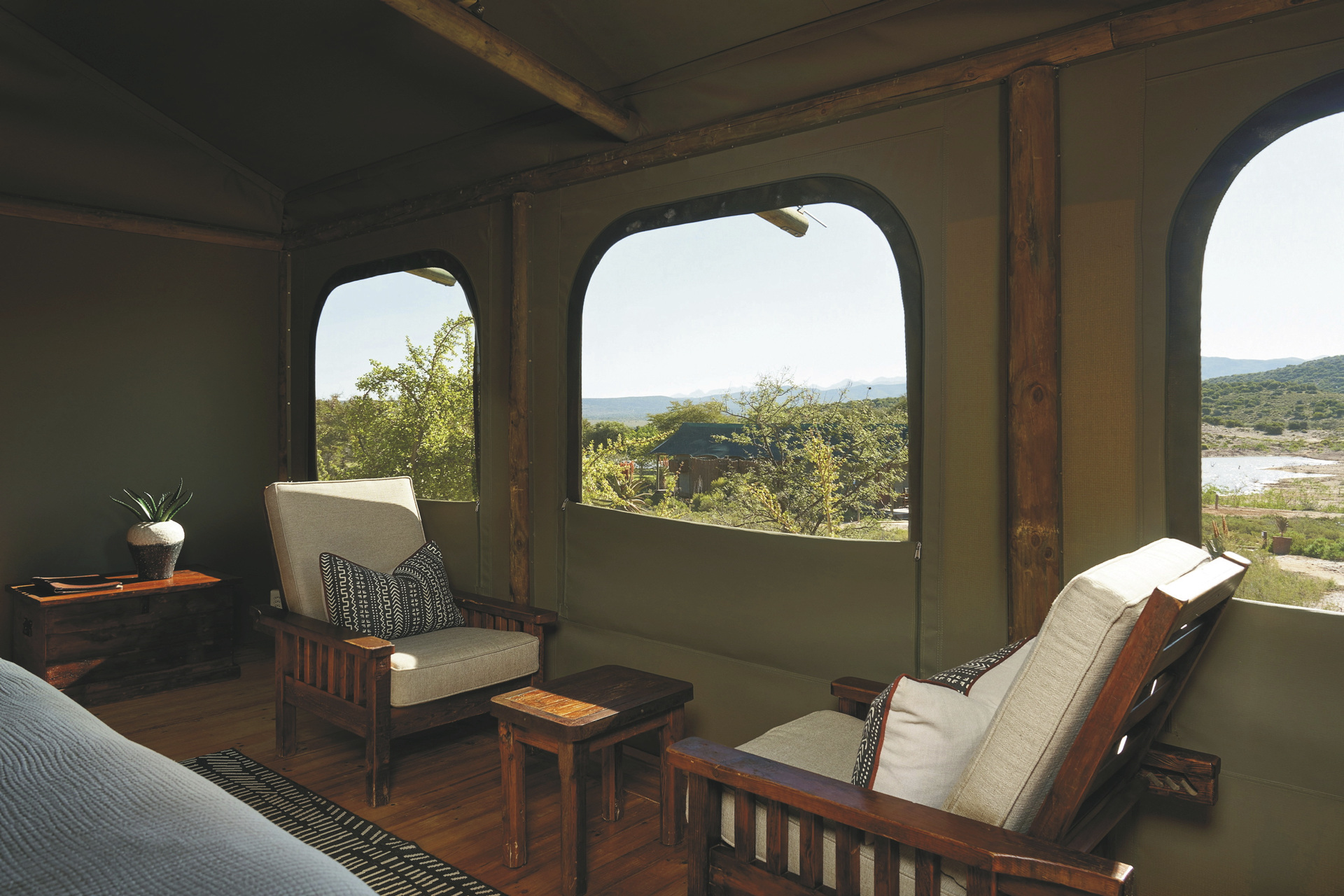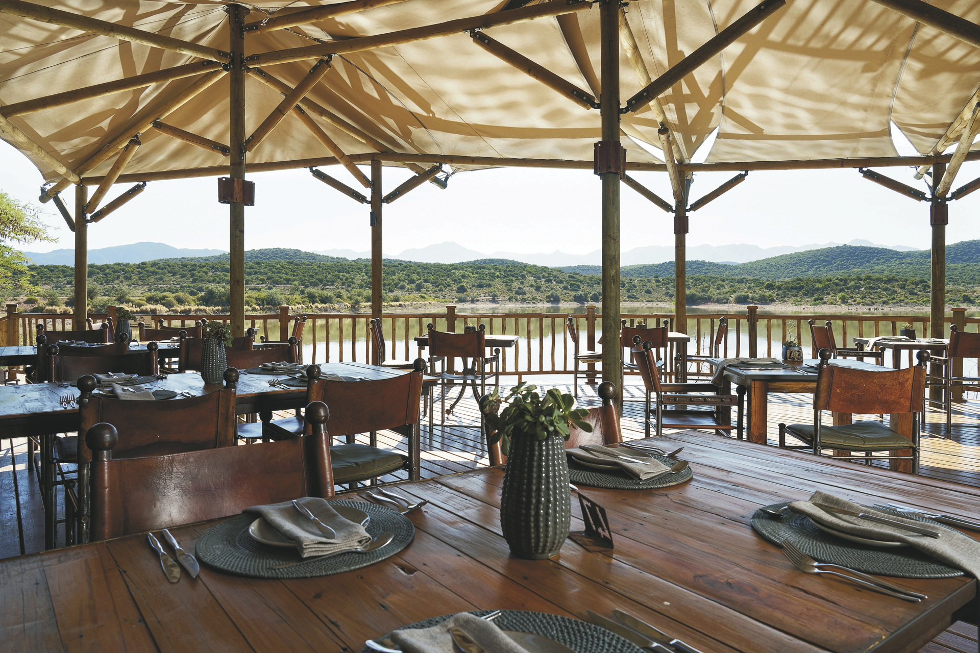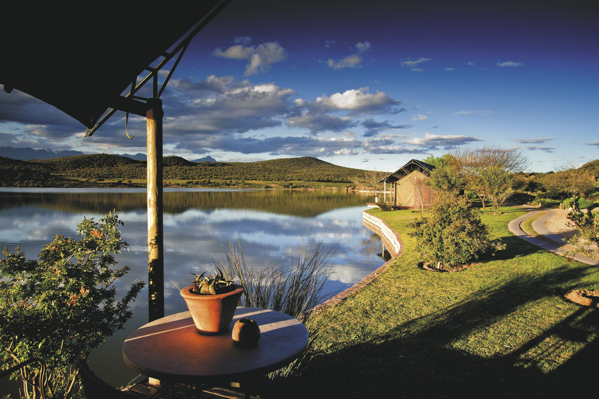 Die gemütliche, reetgedeckte Hauptlodge liegt direkt am Damm und bietet von der großen, überdachten Terrasse einen schönen Blick. Außerdem finden Sie hier eine gemütliche Lounge mit Kamin und einen kleinen Shop. Etwas abseits liegt der Spa, wo Sie eine Behandlung auf der Terrasse erhalten können. Der Pool und die Sonnenterrasse befinden sich zwischen den Superior-Zelten direkt am Damm. Die auf der Lodge lebenden Löwen wurden in Gefangenschaft geboren und können in der Wildnis nicht überleben, da sie nie gelernt haben zu jagen. Es handelt sich dennoch um wilde Löwen, die vom Menschen nicht angefasst werden dürfen, auch nicht von den Wildhütern. Buffelsdrift wurde auch die Heimat von drei verwaisten Elefantenbabys, die mittlerweile ausgewachsen sind, aber ebenfalls nicht mehr ausgewildert werden können, sie kennen ihre Feinde nicht und sind nicht sozialverträglich mit anderen Elefanten. Die Lodge bietet viele optionale Aktivitäten an: Pirschfahrt, Nachtpirschfahrt, Begegnung mit den Elefanten, Geparden-Tracking, Besuch zur Fütterungszeit im Löwen-Schutzgebiet, geführte Wanderung zu den Felsmalereien, Erdmännchen-Safari.