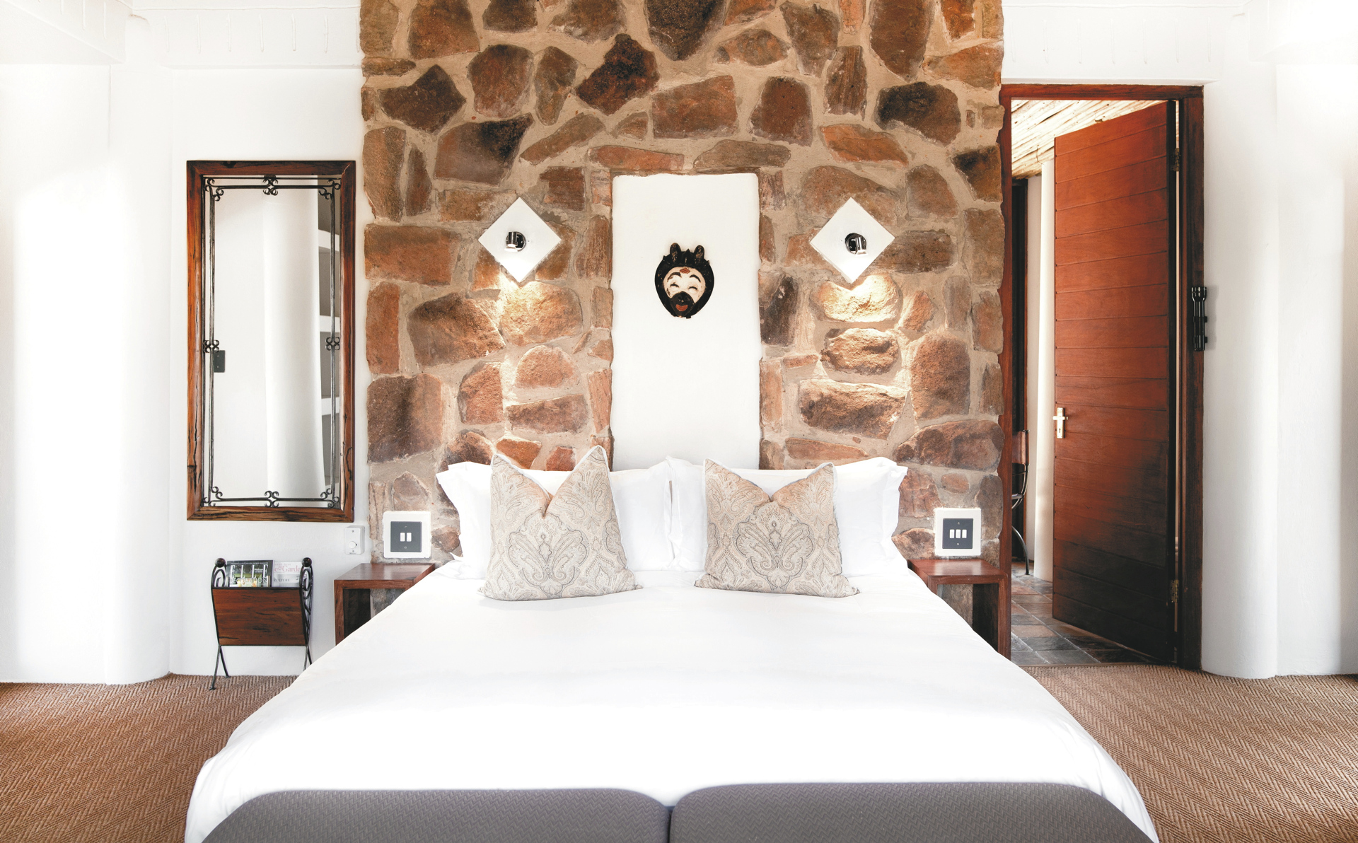 Die 5 reetgedeckten Suiten sind im afrikanischen Stil eingerichtet. Die zweigeschossige Familiensuite mit 2 Badezimmern kommt modern daher und ist perfekt für Familien mit 2 Kindern. Alle Suiten sind ausgestattet mit eigenem Bad mit Innen- und Außendusche, Tee-/Kaffeezubereiter, Fön und Terrasse mit Weitblick in die Savannenlandschaft.