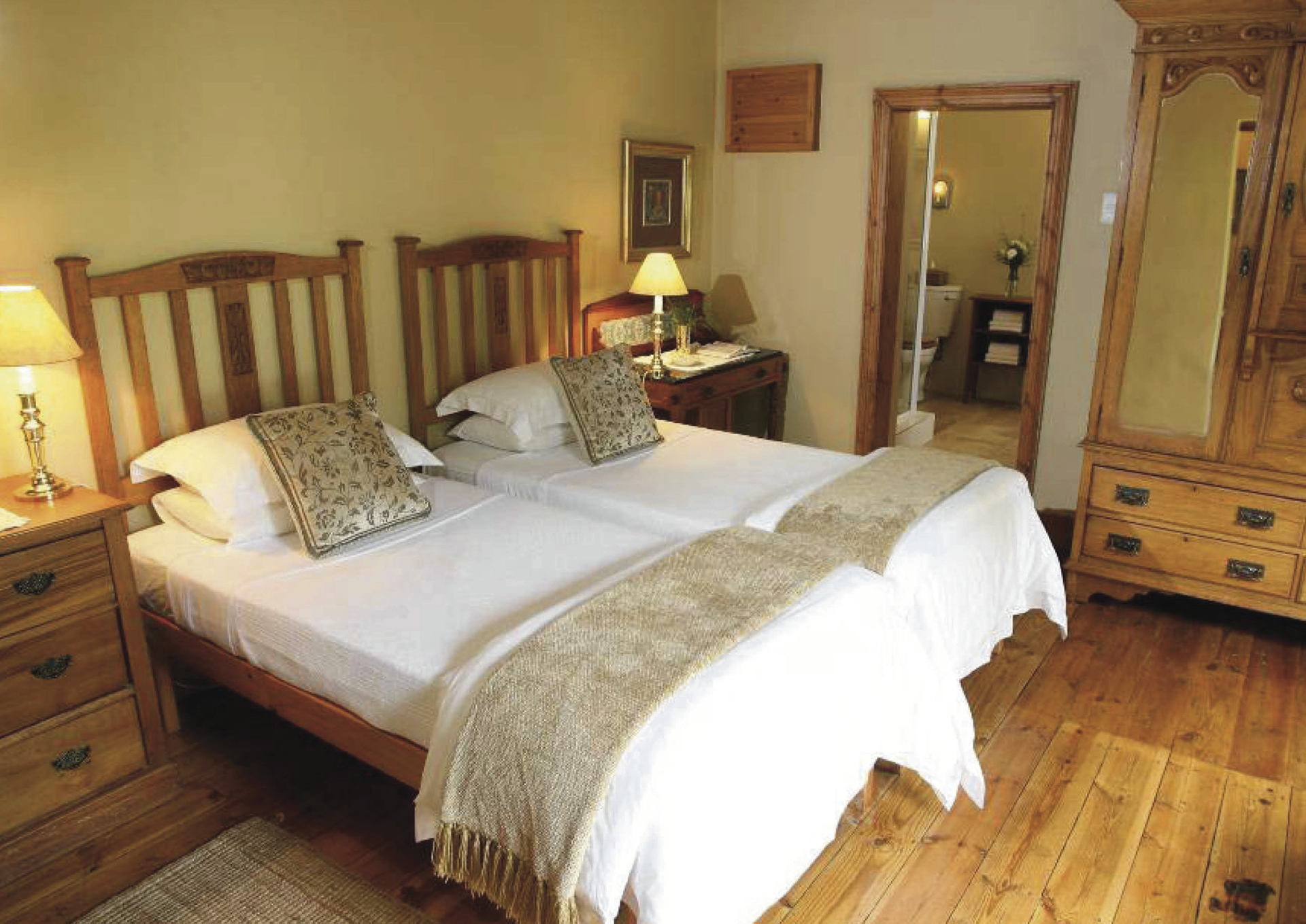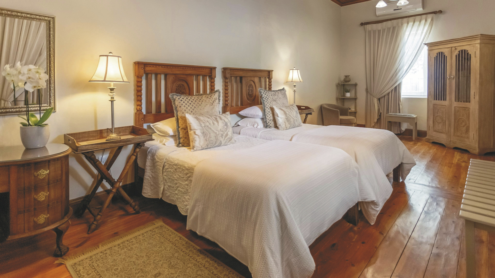 Das alte Farmhaus von 1902 ist geschmackvoll mit erlesenen Möbeln ausgestattet. Im Speisezimmer wird Ihnen hervorragende südafrikanische Farmküche serviert, Lamm, Rind und Strauß aus eigener Zucht kombiniert mit frischem Gemüse. In der gemütlichen Lounge können Sie sich mit anderen Gäste austauschen. Eine umlaufende Veranda verleiht dem Haus einen viktorianischen Schliff. Entspannen Sie am Salzwasserpool mit weitem Blick über die Karoo Landschaft, oder lassen Sie sich im hauseigenen Spa von kundigen Händen verwöhnen. Die optionale Farmtour führt Sie hinter die Kulissen einer Karoo-Farm, sie wird vom Farmer persönlich durchgeführt und ist daher saisonal abhängig vom Farmbetrieb. Mit dem offenen Safarifahrzeug geht es hinaus auf die verschiedenen Feldern mit Luzernen, Schafen und Straußen, wo Sie neben Informationen zum Farmbetrieb auch viel Interessantes über die Geschichte der Region erfahren.