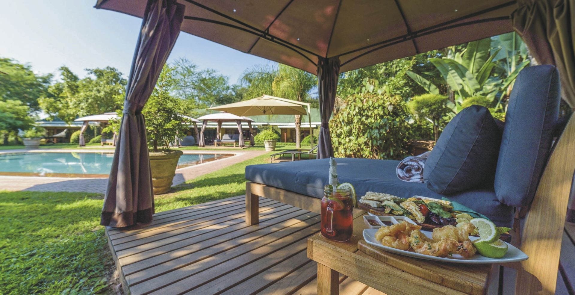 Das Boutique Hotel bietet alles, was Sie für einen bequemen und ungezwungenen Aufenthalt benötigen. Im Hauptbereich finden Sie das Kuka Café, welches für Ihr leibliches Wohl und spritzige Getränke am Abend sorgt. Zum Bummeln lädt eine kleine Ladenpassage mit ausgesuchten Shops ein. Für die kleinen Gäste steht ein Spielplatz zum Austoben zur Verfügung. Gemütlich geht es in der Garten-Lounge zu. Geführte Rundfahrten und Aktivitäten können Sie im Buchungsbüro für Ausflüge reservieren. Kostenloses WLAN steht im kompletten Hauptbereich zur Verfügung. Im tropischen Garten finden Sie einen großen Pool und reichlich Liegeflächen. Sichere Parkplätze vorhanden.