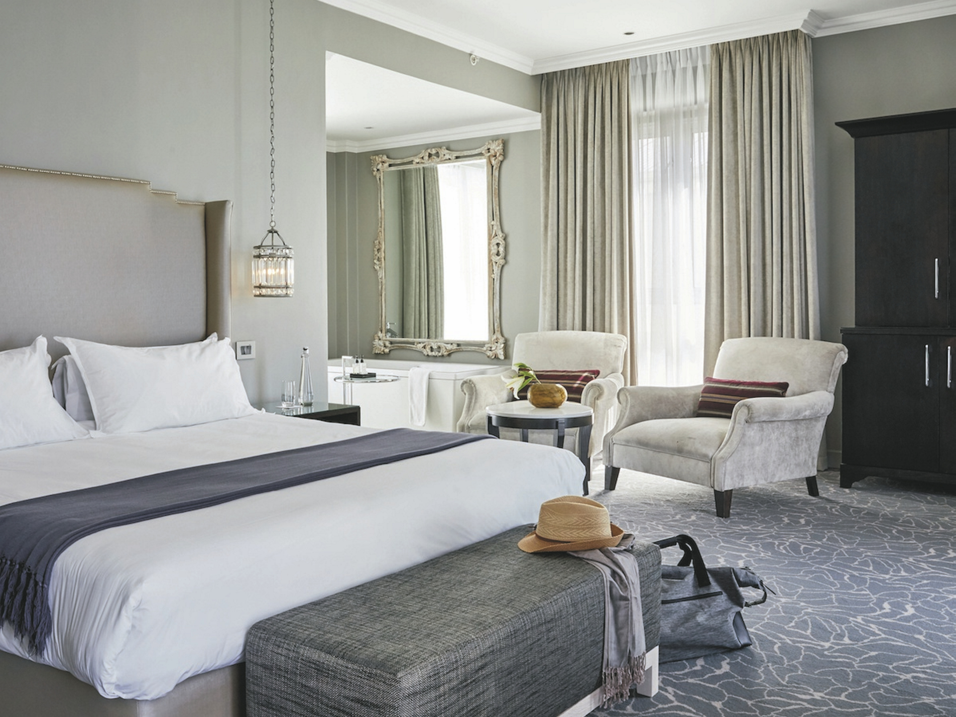 Die 31 Zimmer und 3 Suiten im klassisch-eleganten Stil sind geräumig und individuell eingerichtet. Die Deluxe-Zimmer blicken auf den Innenhof, die Premium-Zimmer auf den Hafen oder den Tafelberg. Alle Zimmer verfügen über ein eigenes Badezimmer - teilweise offene Bauweise; Safe, Fön, Telefon, TV, kostenloses WLAN, Klimaanlage, Minibar und Tee-/Kaffeezubereiter. Die Suiten haben zusätzlich eine Lounge und einen Balkon, teilweise mit Blick in den Innenhof. Für Familien gibt es Zimmer mit Verbindungstüren.