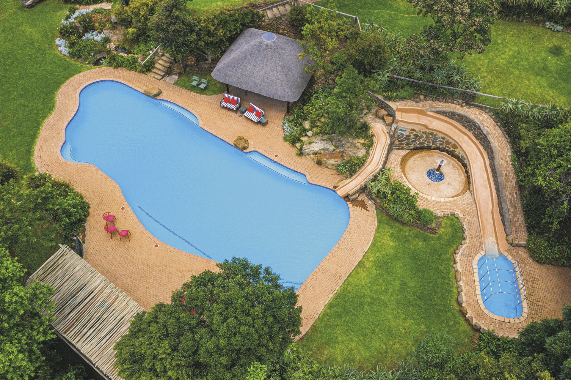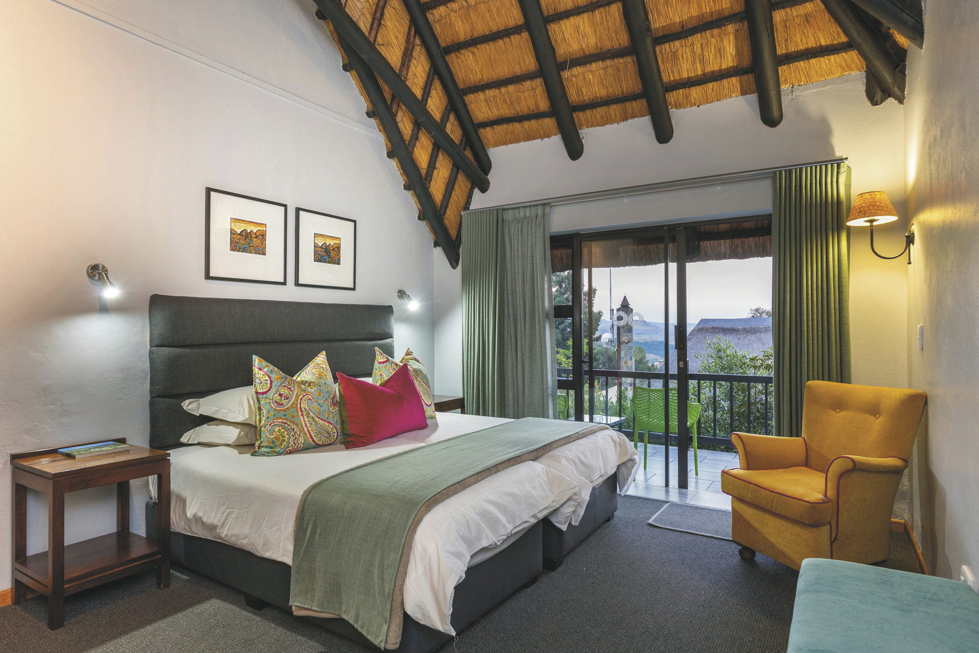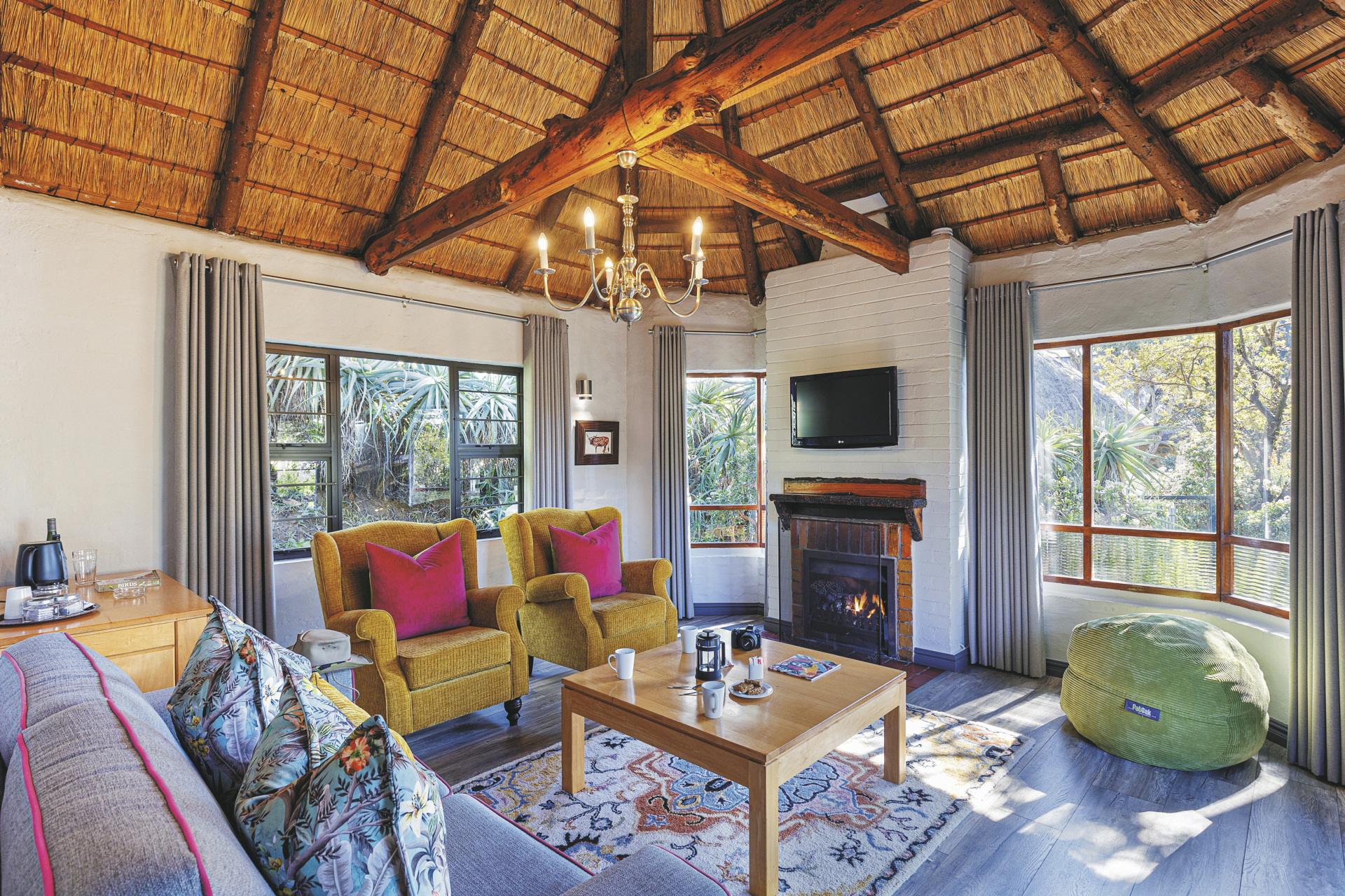 Es gibt insgesamt 55 behagliche Zimmer und Suiten in 3 Kategorien. Die Standardzimmer befinden sich im Garten, die Superior-Zimmer blicken auf einen wunderschönen Farnwald. Jedes der strohgedeckten Zimmer ist hell und modern ausgestattet und verfügt über ein eigenes Bad, Heizung, Ventilator, Tee-/Kaffeezubereiter, Terrasse oder Balkon. Die Superior-Zimmer haben zusätzlich ein Moskitonetz, eine Minibar und TV. Die geräumigen Suiten sind außerdem mit einem Kamin ausgestattet. Für Familien stehen in der Dreibettzimmer und Zimmer mit Verbindungstür zur Verfügung, aber auch Suiten mit 2 Schlaf- und Badezimmern sowie einer gemeinsamen Lounge.