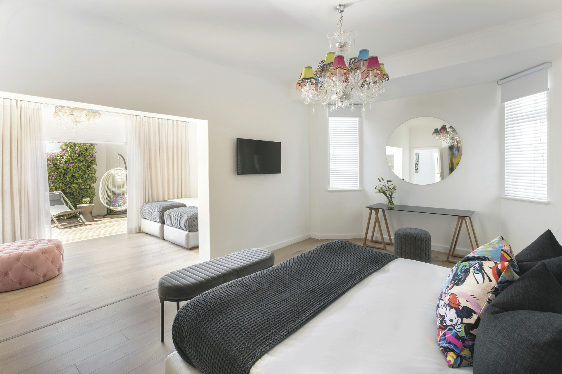 Die 16 geräumigen Zimmer und Suiten sind luxuriös eingerichtet und mit hochwertigen Stoffen dekoriert. Alle verfügen über moderne Badezimmer; TV, Telefon, WLAN, Safe, Minibar, Fön, Tee-/Kaffeezubereiter und Klimaanlage/Heizung, einige haben einen Balkon oder eine Terrasse. Die Premium-Zimmer sind geräumiger als die Superior-Zimmer und haben teilweise Meerblick. Die Familiensuiten bestehen aus je zwei Schlafzimmern, die sich ein Badezimmer teilen.