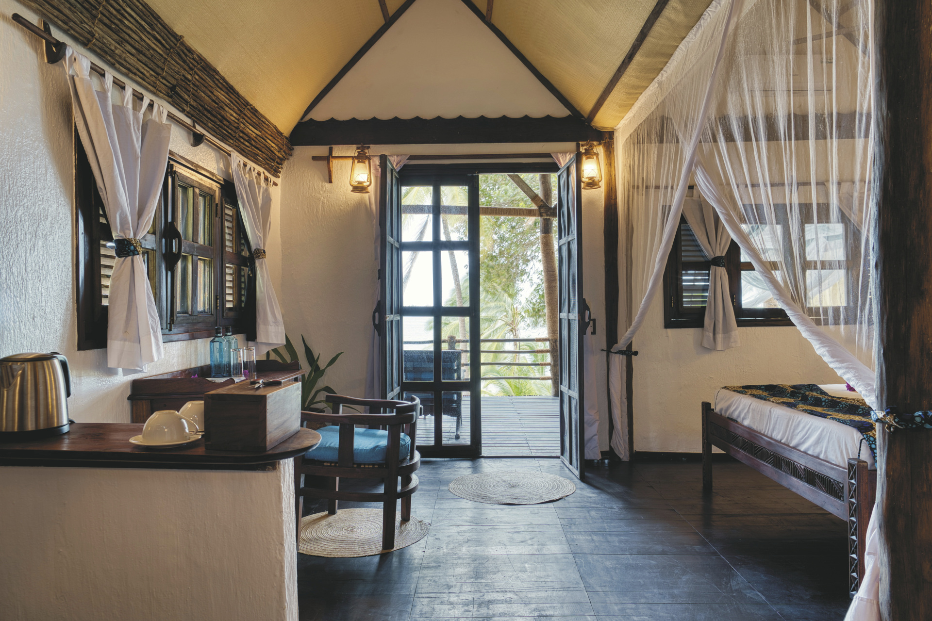 Inmitten von Kokospalmen mit Blick auf die Chloe Bay liegen die 12 geräumigen Bungalows und Suiten. Sie verfügen über ein Bad mit Dusche/WC, Klimaanlage, Deckenventilator und eine Veranda mit Tagesbett. Die Suiten sind größer und haben einen eigenen Plunge Pool. Die Alfajiri und Alasiri Suiten liegen direkt am Strand.