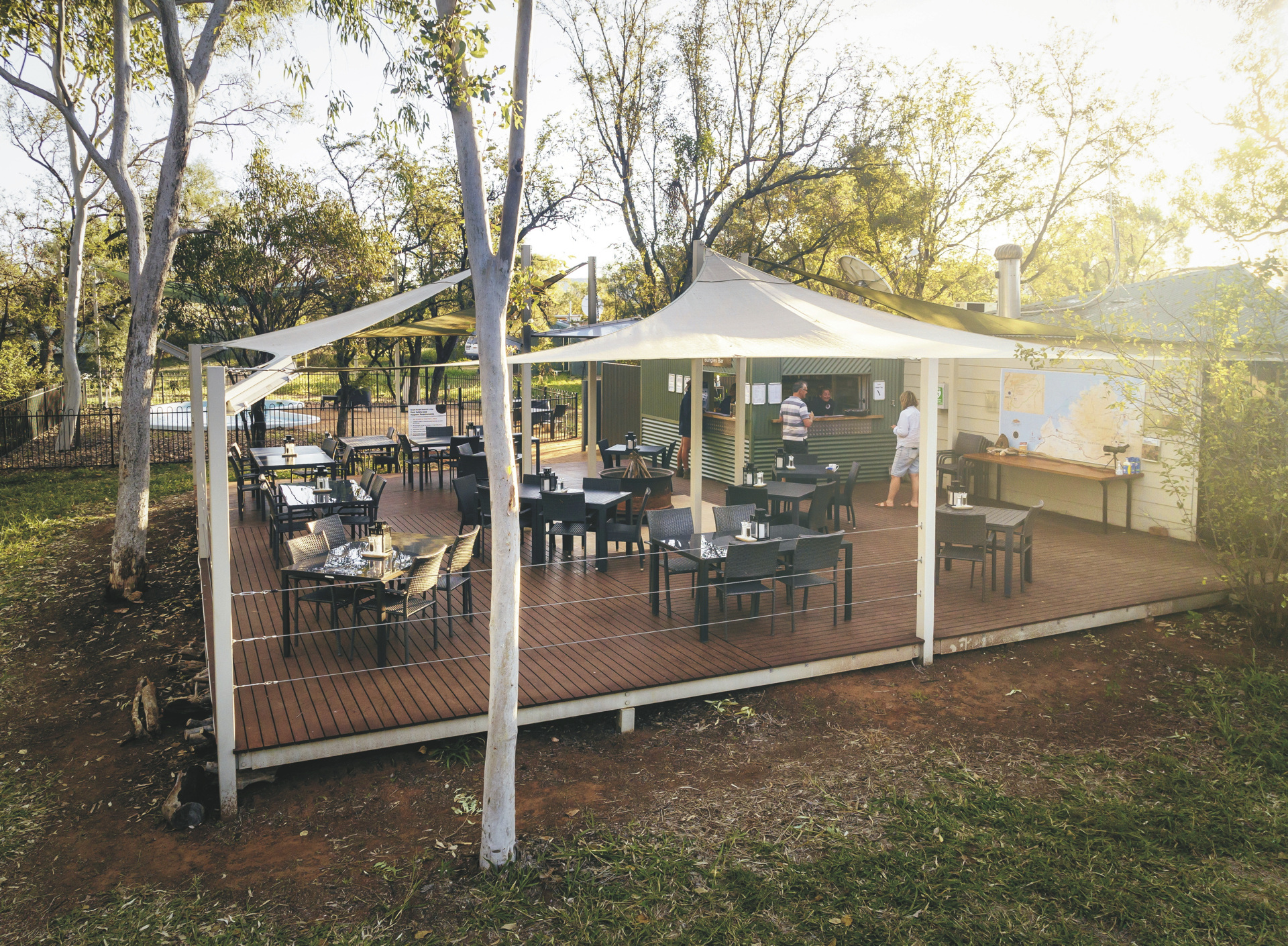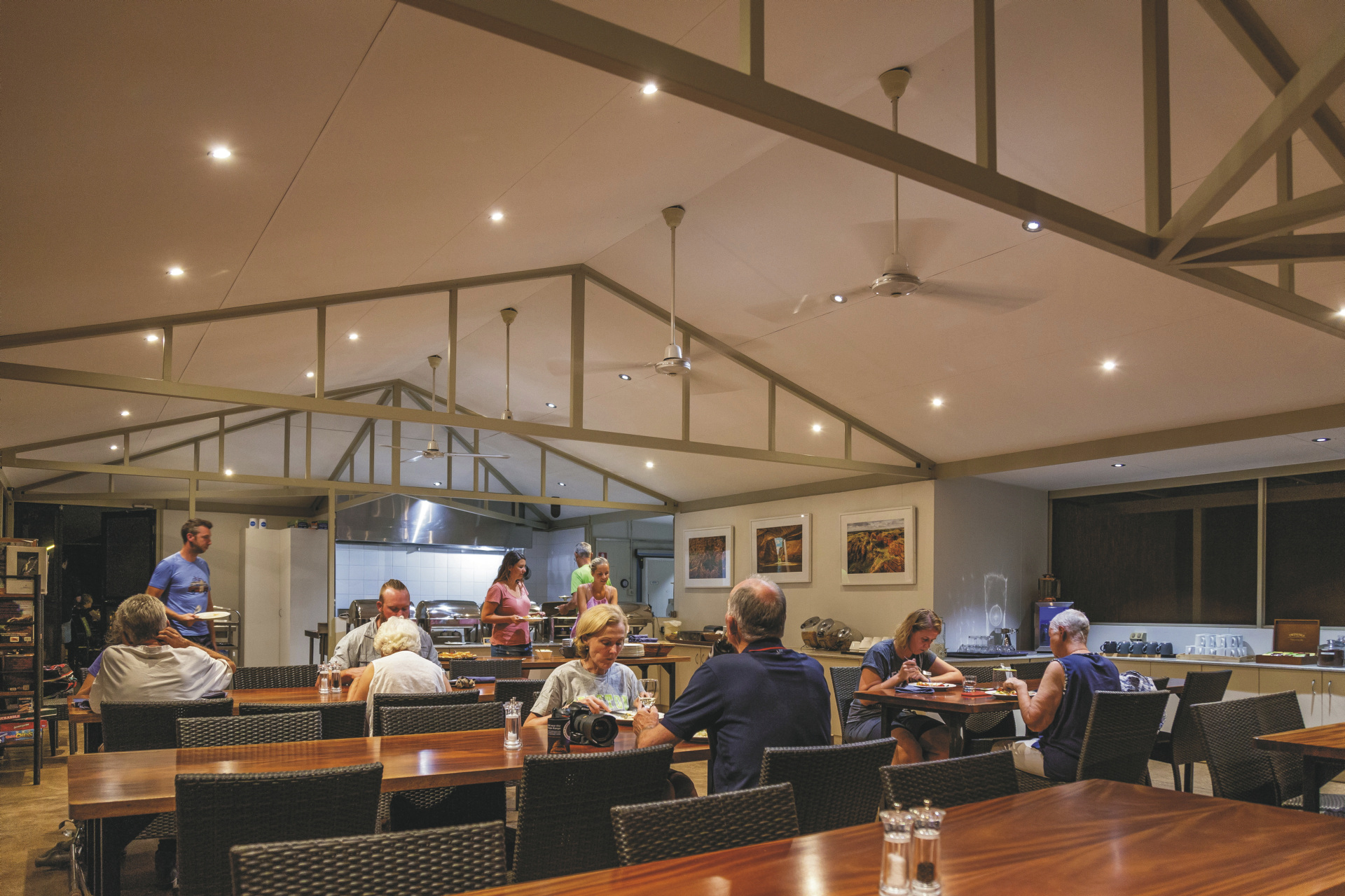 Tagsüber die Bungle Bungle zu erkunden und die Nacht im Herzen Nationalparks zu verbringen, ist ein einzigartiges Erlebnis. Die Eco-zertifizierte Savannah Lodge bietet ihren Gästen ein Restaurant, das ein 3-Gänge-Menü zum Abendessen und ein Frühstücksbuffet serviert, sowie die lizenzierte Bungles Bar als geselliger Treffpunkt. Ein Swimmingpool lädt ein zur Abkühlung. Weiterhin gibt es eine offene Feuerstelle im Freien und eine schattige Terrasse. Ein besonderes Highlight ist der Aussichtspunkt am Sunset Spot - der ideale Platz für einen Drink bei Sonnenuntergang. Es gibt weder WLAN noch Mobilfunkempfang in der Lodge.