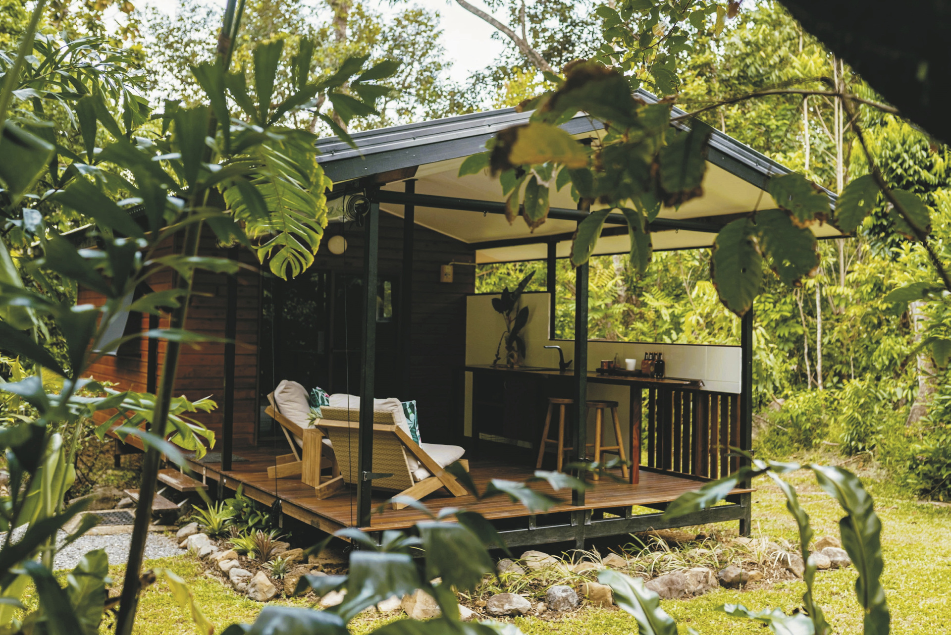 Nördlich des Daintree River, eingebettet zwischen dem Daintree Rainforest und dem Strand am Cape Tribulation. Cairns ist ca. 2,5 Stunden, Port Douglas ca. 90 Minuten entfernt.
