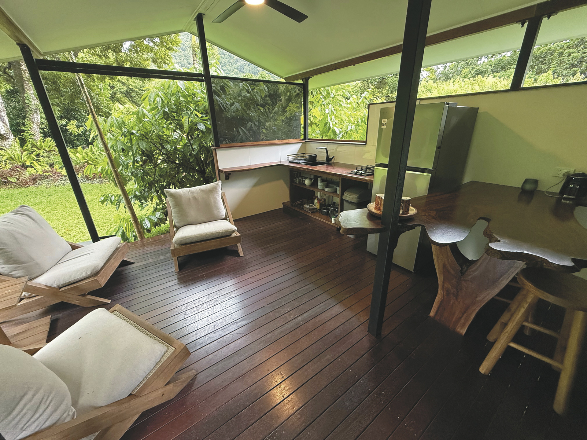 Die familiengeführte Farm verbindet aktive Landwirtschaft mit einem authentischen Farmaufenthalt in ruhiger, naturnaher Atmosphäre. Einzigartig und beliebt ist die Tropical Fruit Tasting Tour (optional, April-Dezember), bei der über 80 seltene und exotische Früchte verkostet werden können. Weitere mögliche Aktivitäten sind Ausflüge in den Daintree Nationalpark und zum Great Barrier Reef. Das tropische Farmfrühstück ist im Übernachtungspreis eingeschlossen.