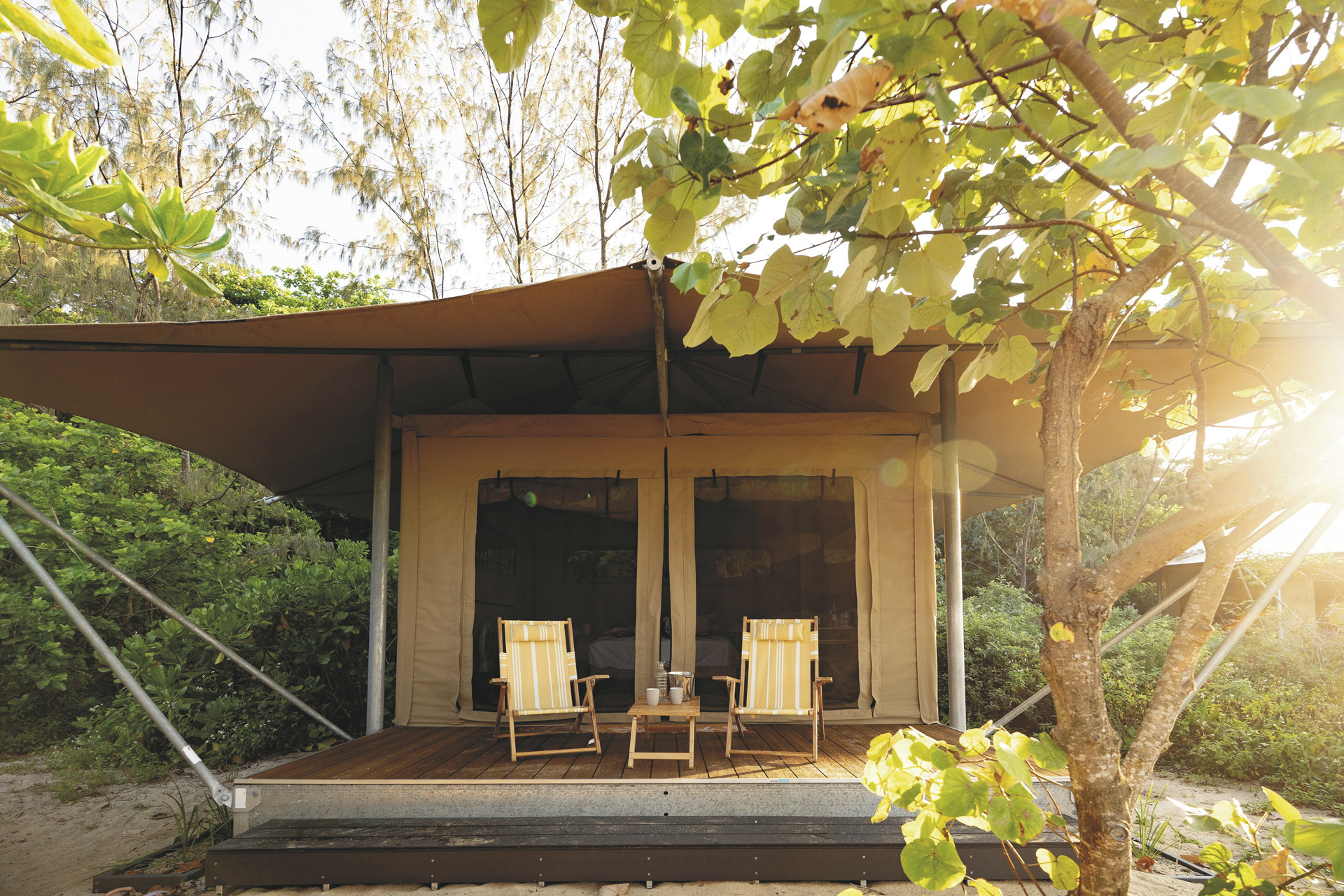 Die 8 Beachfront Eco Tents (fest installierte Zeltbungalows mit Holzfußboden und Zeltwänden mit großen Öffnungen für gute Belüftung und Aussicht) liegen nur Schritte vom Strand entfernt. Zur Ausstattung zählen u.a. komfortable Betten (wahlweise Kingsize-Bett oder zwei Einzelbetten), Bettwäsche und Handtücher, Ladeanschluss, Beleuchtung, eine Kühlbox mit Eis sowie eine Terrasse mit Sitzmöbeln. Die Unterkünfte verfügen über keine Klimaanlage haben aber Ventilatoren und nutzen gemeinschaftliche Sanitäranlagen im nahegelegenen Servicegebäude.