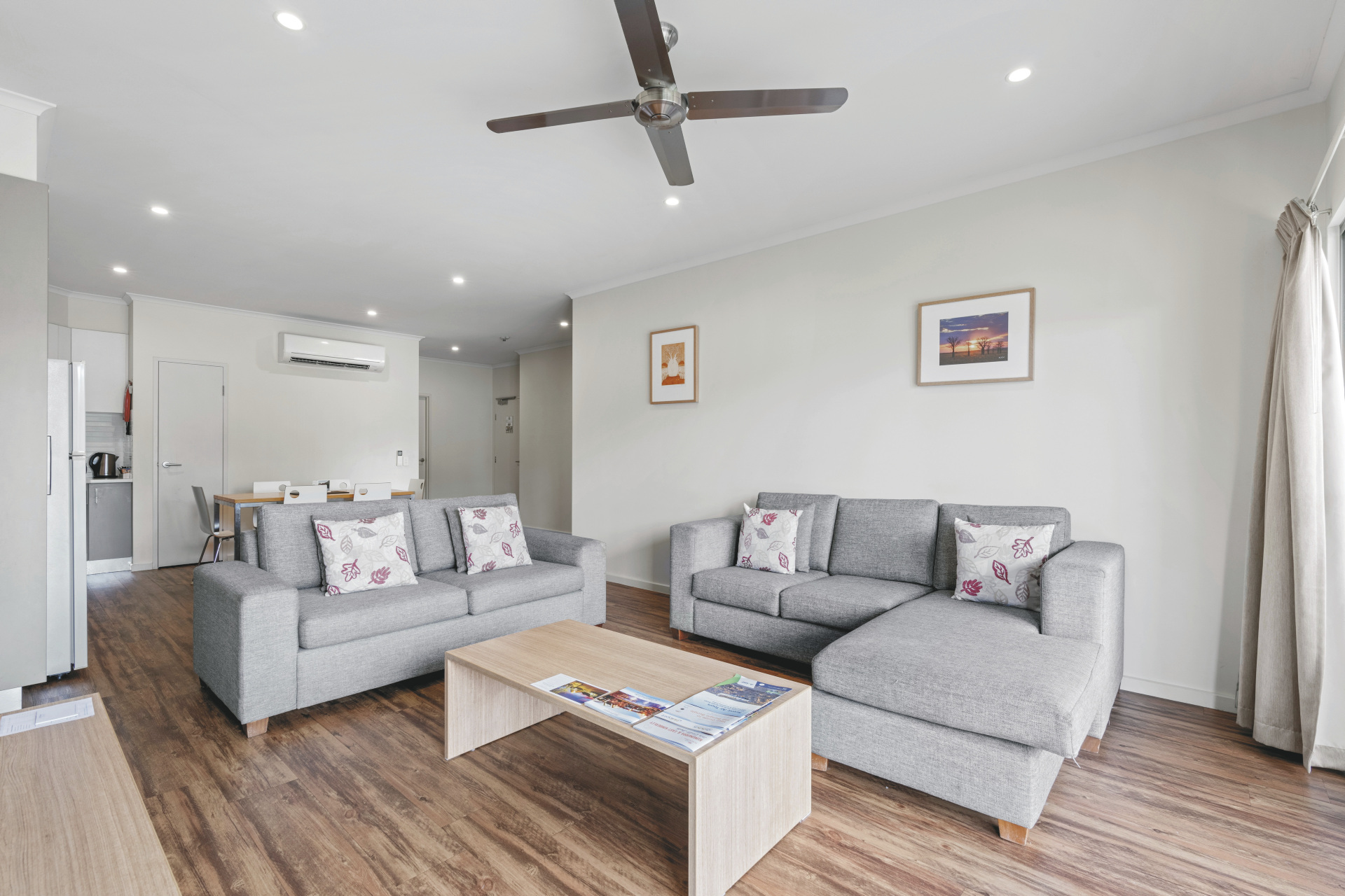 Den Gästen steht ein einladender Pool, ein BBQ-Platz, Waschsalon, überdachte Parkplätze und kostenloses WLAN zur Verfügung. Im Hotel nebenan gibt es ein Restaurant und eine Bar mit Außenterrasse.