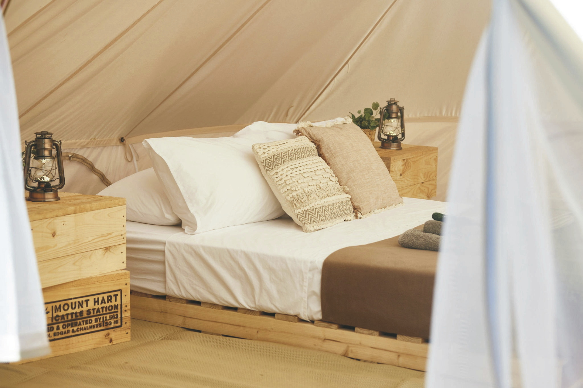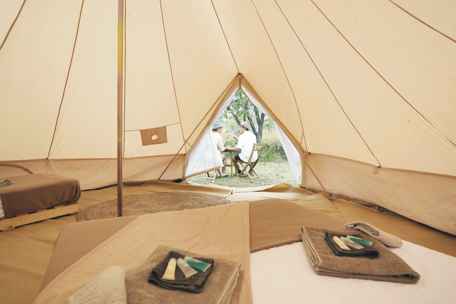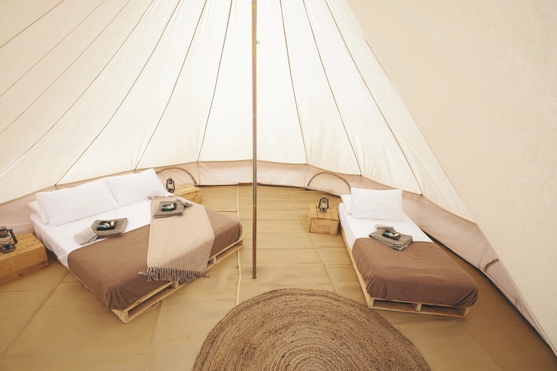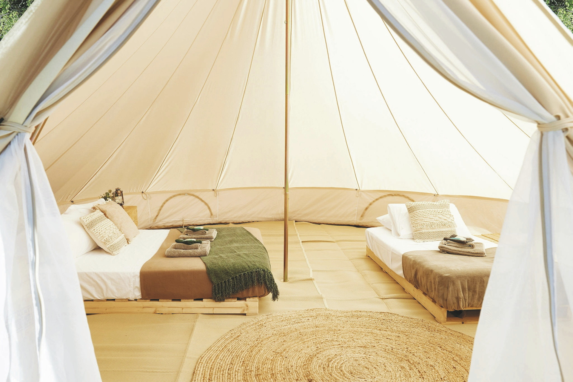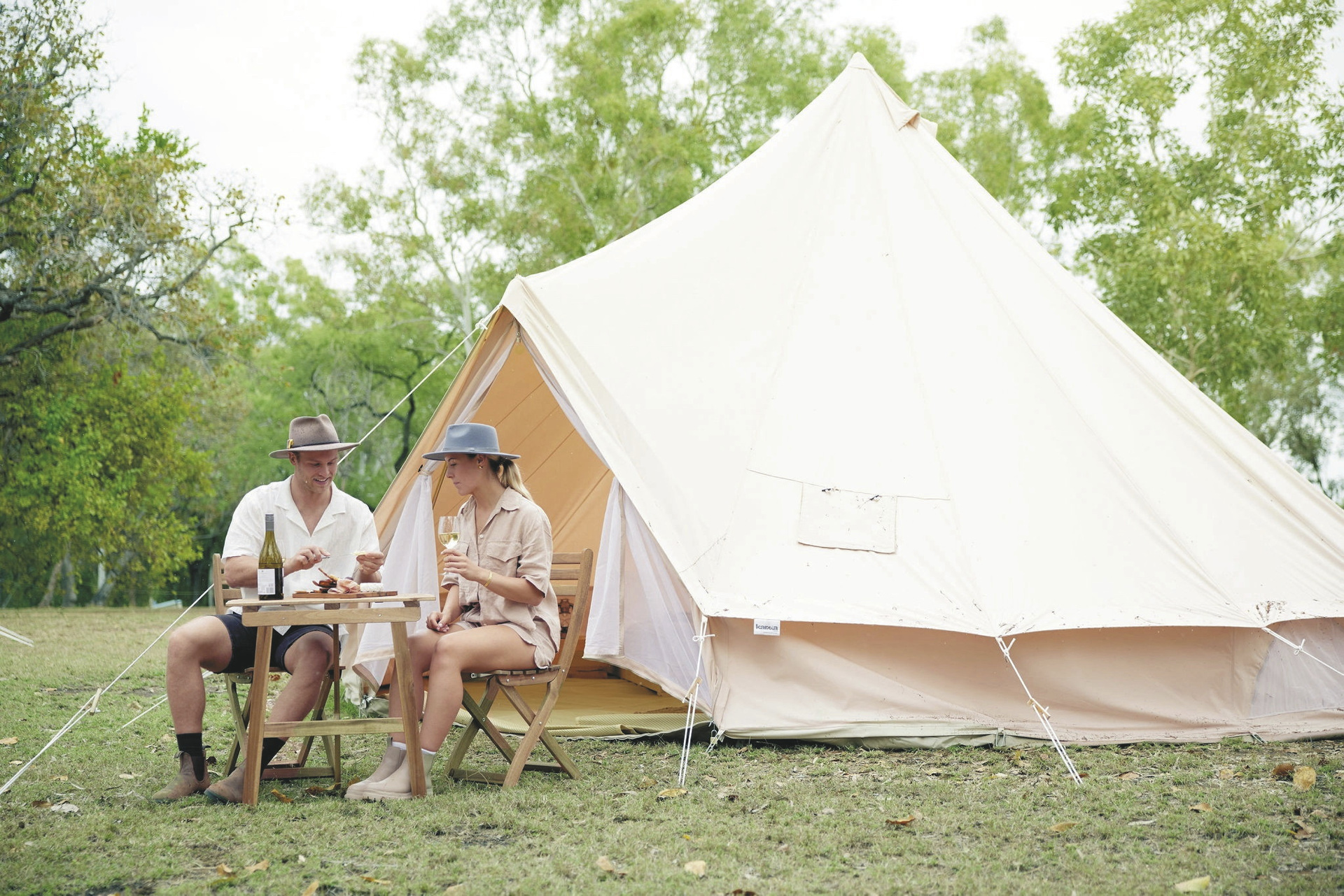 3/33Blick auf den Campingplatz und Bell Tents am Fluss