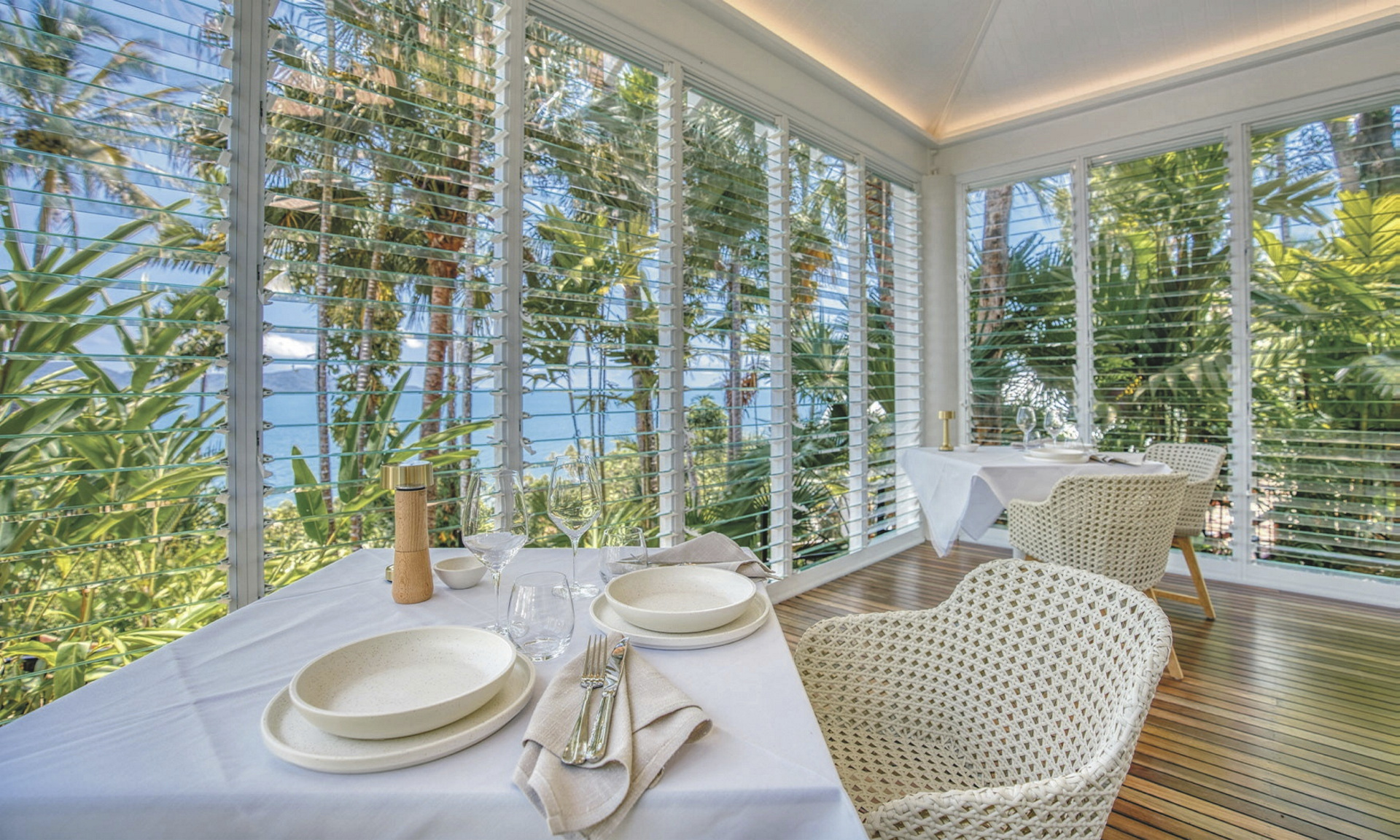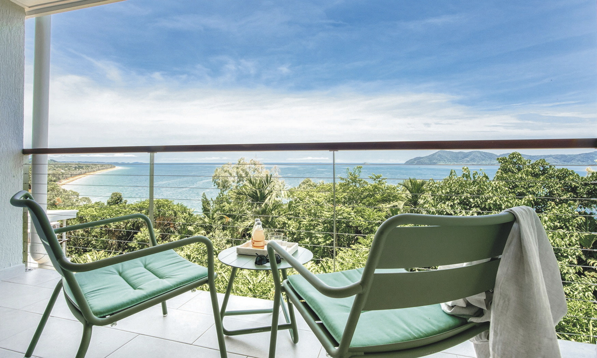 Boutique-Resort eingebettet in tropischen Regenwald mit Panoramablick über das Korallenmeer und die vorgelagerten Inseln von Mission Beach. Ideal für eine entspannte Auszeit in stilvoller Umgebung.