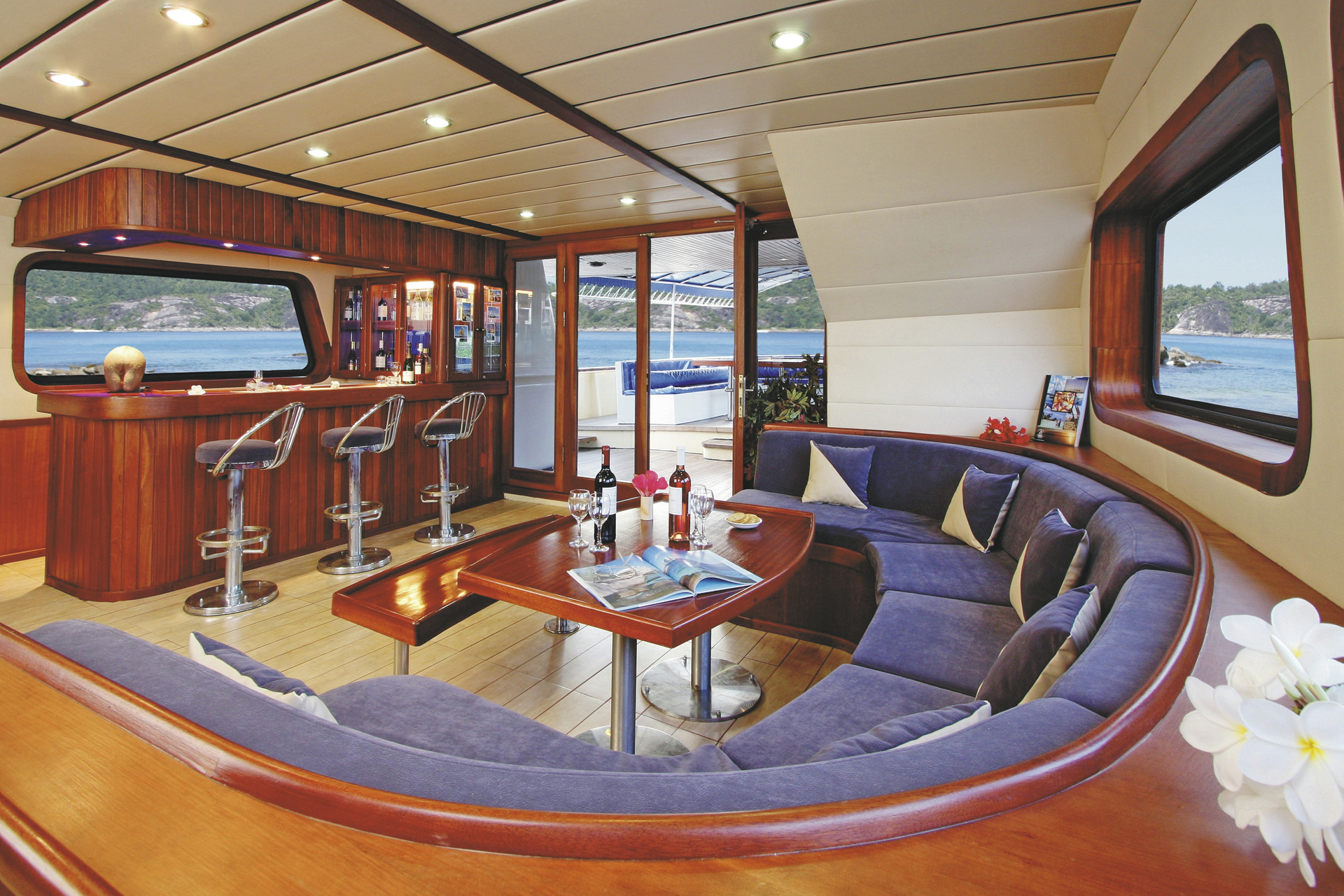 Die S.Y. Sea Star & S.Y. Sea Bird sind vollausgestattete Yachten mit je 9 Doppelkabinen (buchbar mit privatem Bad). Die Katamarane sind ca 40 Meter lang und ca 8 Meter breit. Alle Kabinen und der Salon sind mit einer Klimaanlage ausgestattet. Über das traditionelle technische Equipment steht den Gästen TV, CD- und DVD-Player und eine voll ausgestattete Küche zur Verfügung. Handtücher und Bettwäsche werden zur Verfügung gestellt. Betreut werden Sie durch die acht- bis neunköpfige Crew bestehend aus Kapitän,