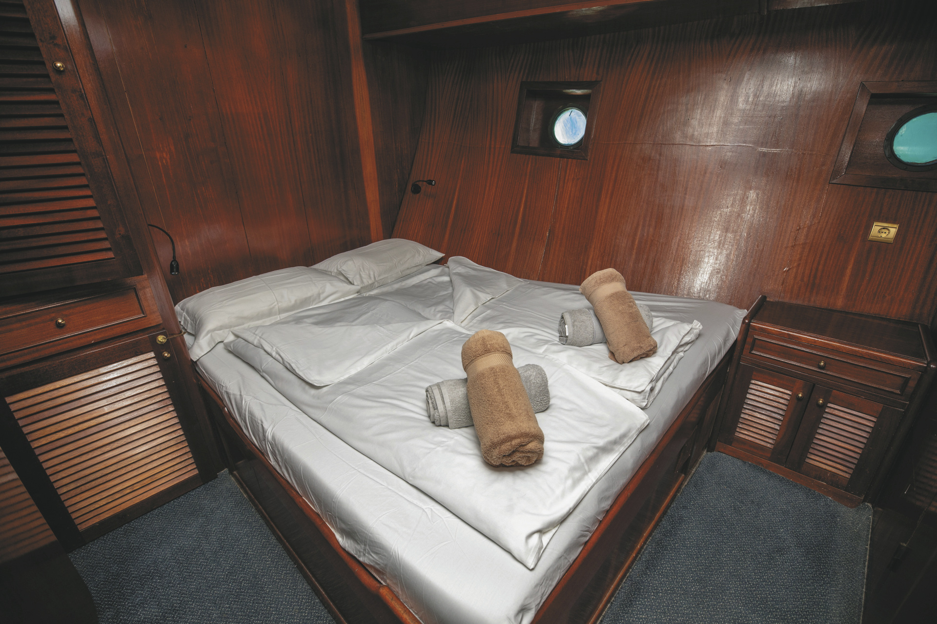 • Kabinen: 9 Doppelkabinen (Kategorien mit und ohne privates Bad buchbar)