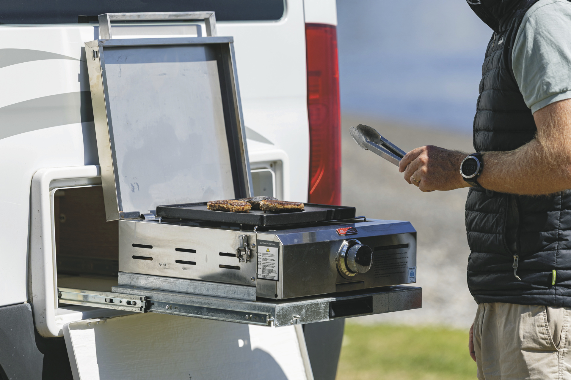 • Gaskocher innen sowie zusätzlich außen ausziehbarer Gaskocher