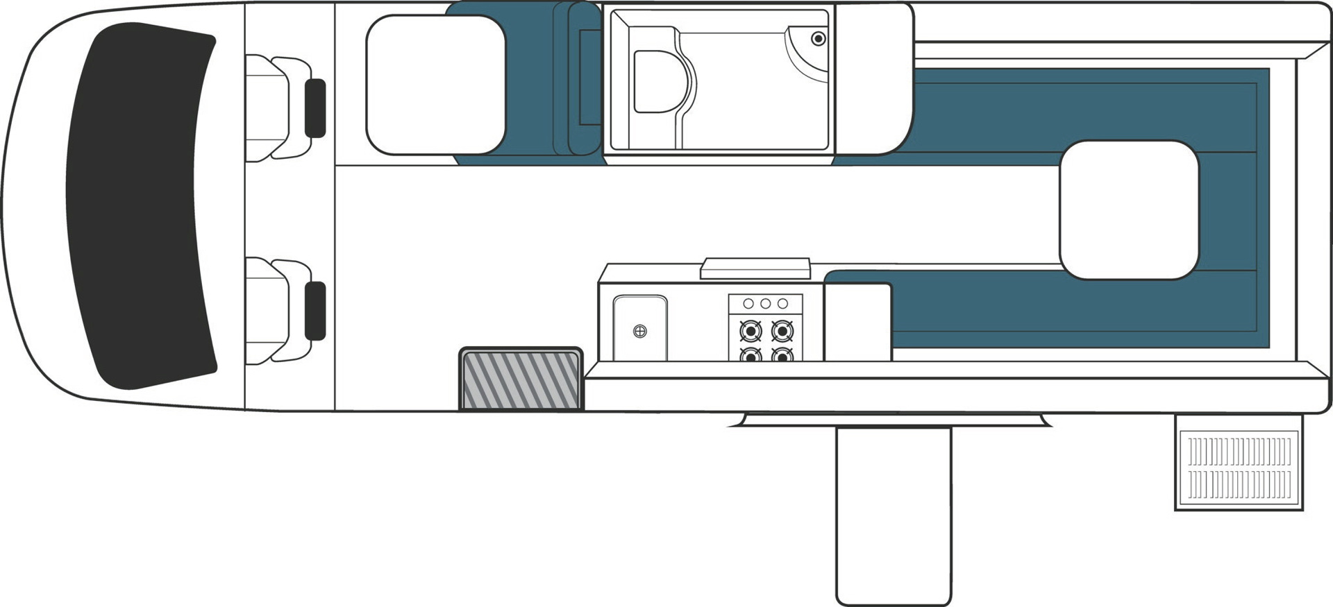 • 2 Sitzplätze in Fahrerkabine (zum Wohnbereich drehbar)