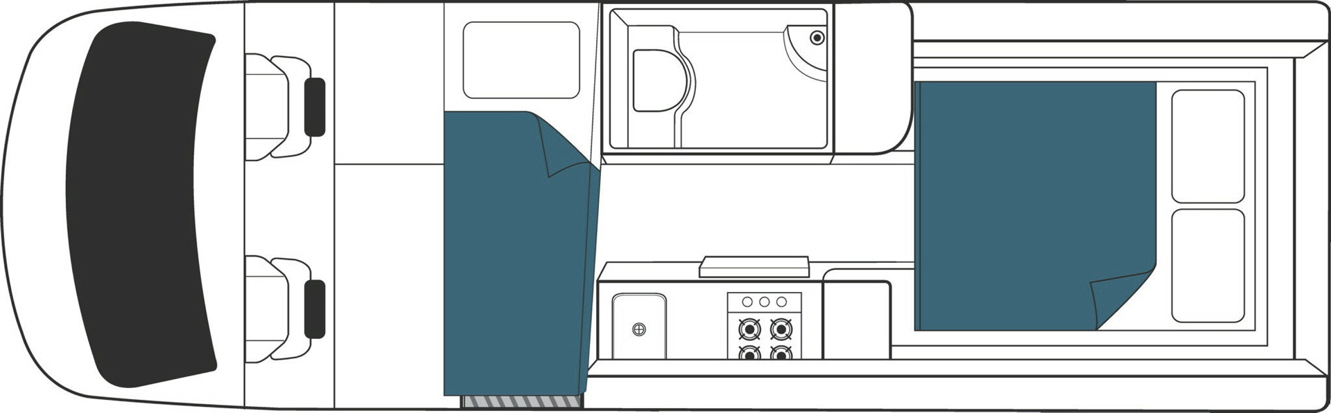 Der Ultima Plus Camper basiert auf einem Mercedes Sprinter o.ä. und zeichnet sich durch ein zusätzliches Einzelbett aus. Ein Fahrzeug mit Platz und Komfort für zwei Erwachsene mit einem Kind.