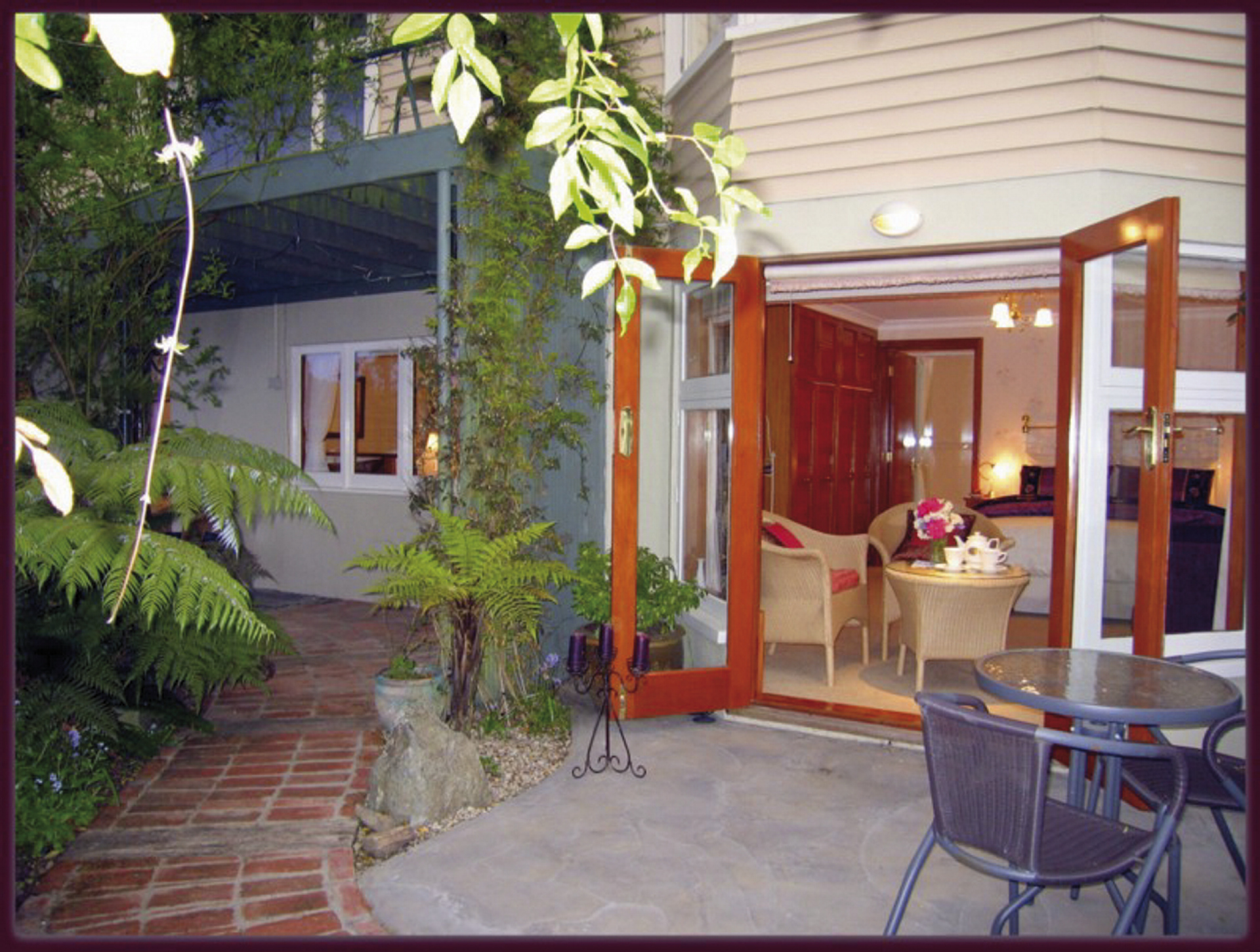 Erleben Sie ein typisch neuseeländisches B&B in traumhafter Lage auf der Otago Halbinsel und genießen Sie morgens Ihr Frühstück im schönen Garten.