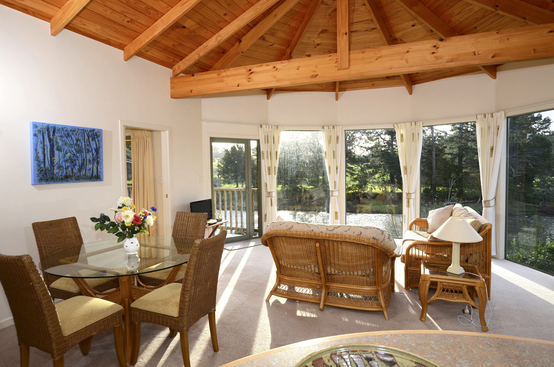 Das romantische Bed & Breakfast-Haus befindet sich in einer der schönsten Landschaften der Nordinsel Neuseelands. Die Lodge selbst liegt am Ufer des Waitangi-Flusses, dessen sanft dahinfließendes Wasser und die gegenüberliegenden grünen Felder ein Gefühl der Ruhe und Entspannung vermitteln.