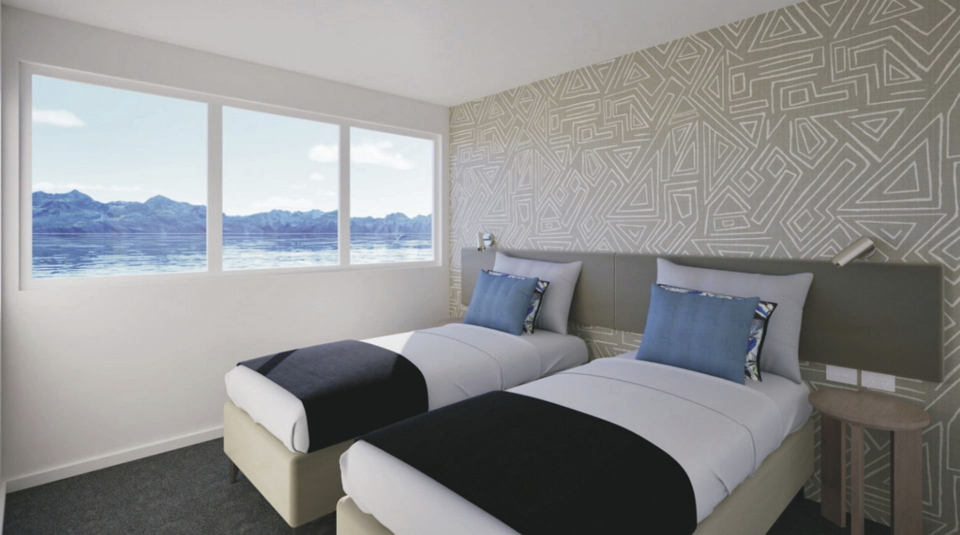 Alle Kabinen befinden sich oberhalb des Wassespiegels, sind ca. 14.5 m² groß, bieten große Fenster mit Meerblick, Klimaanlage, privates Bad mit Fön, TV/DVD, Stauraum, Minibar (am 1. Tag aufgestockt mit alkohlischen und nichtalkoholischen Getränken), Begrüßungsgeschenk in Form einer Tragetasche mit Pure Fiji Kosmetikartikel pro Kabine, einer wiederverwendbaren Metall-Wasserflasche und einem Sulu (Sarong) für jede Person.