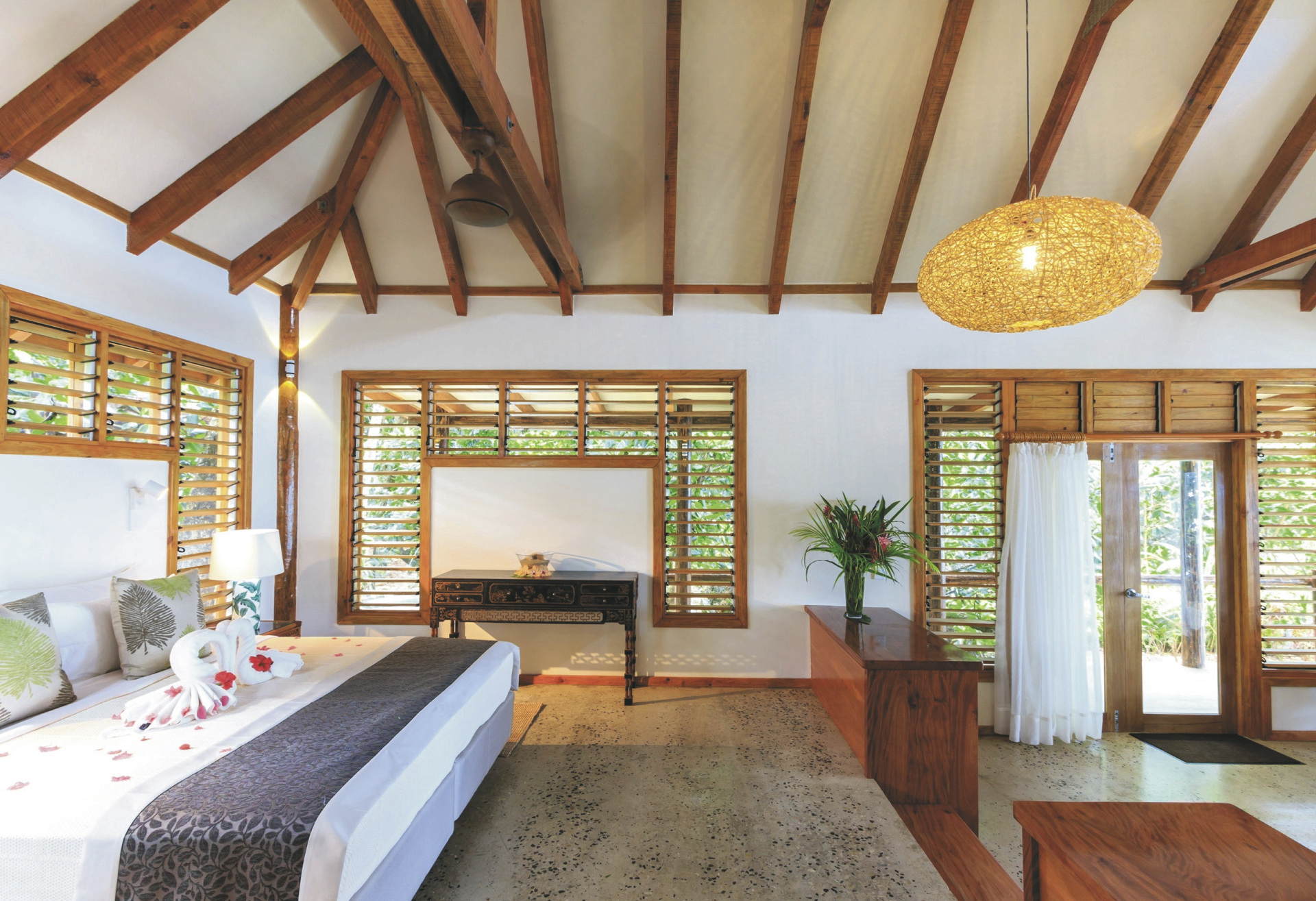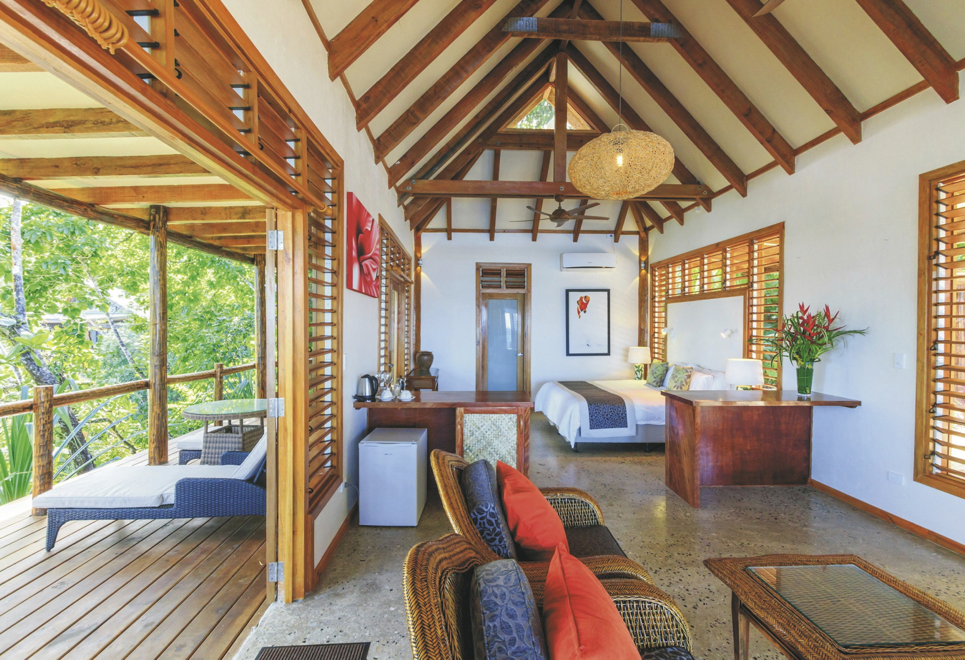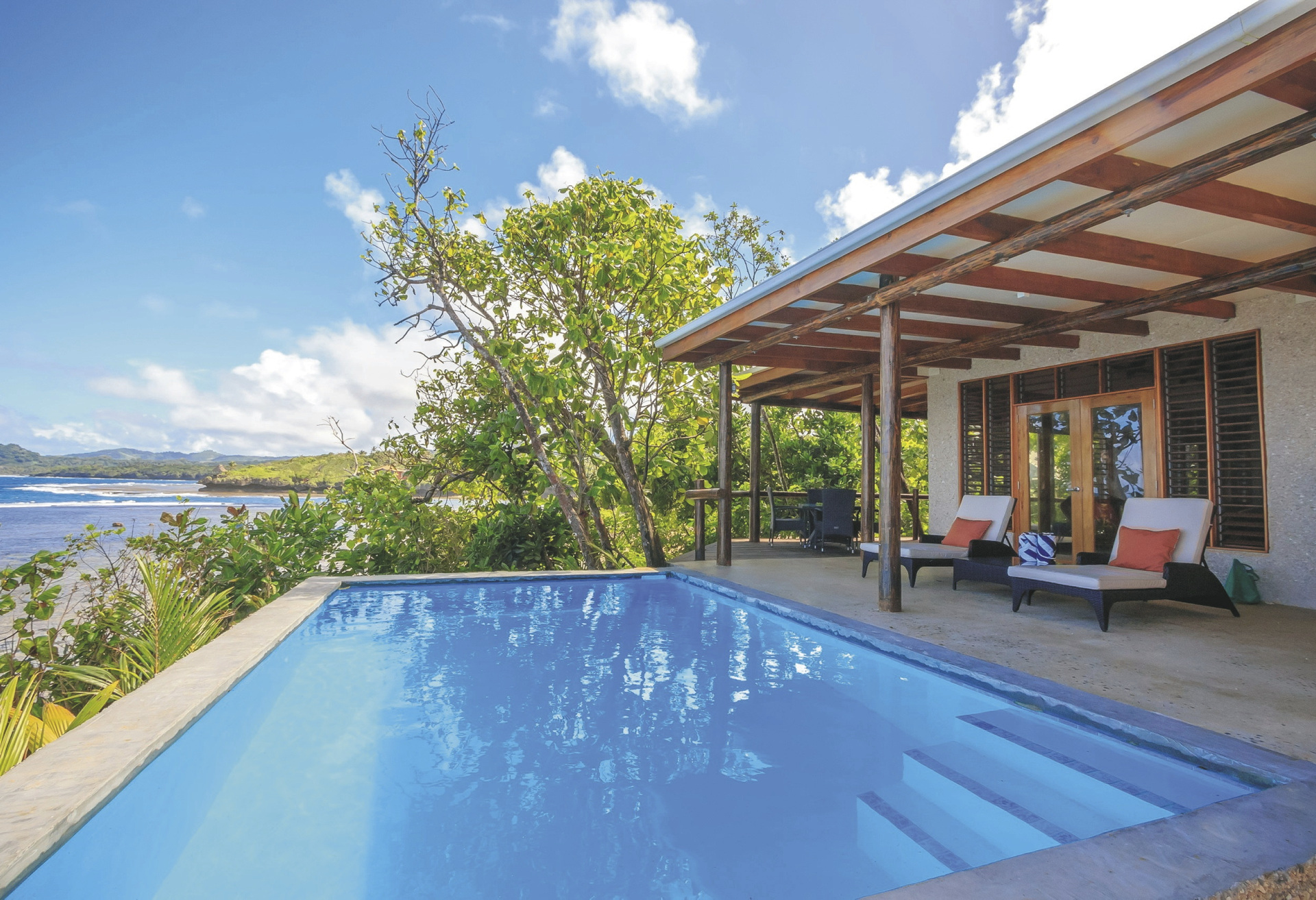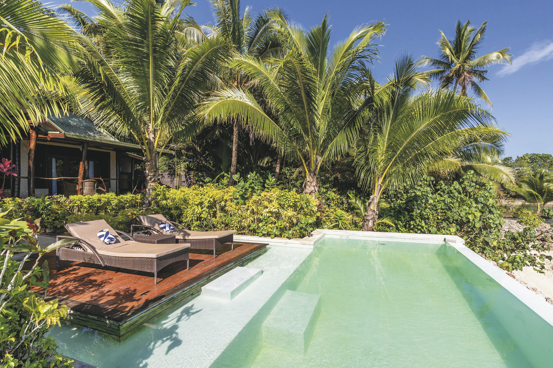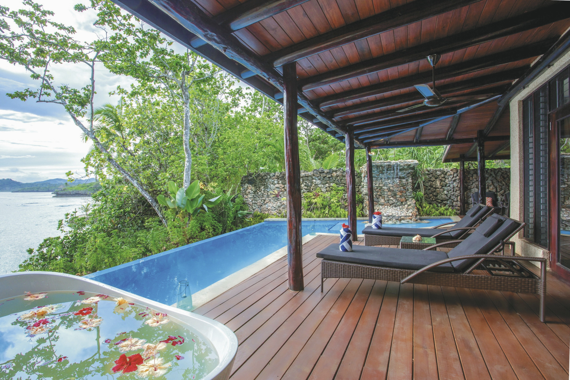 Die Villen liegen auf einer vulkanischen Anhöhe, umgeben von Regenwaldgärten und abgelegenen kleinen Stränden, und bieten Ihnen ein wahres tropisches Paradies.Die Unterkünfte sind so gestaltet, dass sie sich nahtlos in die Umgebung der Insel einfügen und atemberaubende Ausblicke, viel Platz und Privatsphäre bieten. Die Villen unterscheiden sich in der Anzahl der Schlafzimmer und in ihrer jeweligen einzigartigen Lage. Alle haben Meerblick und einen eigenen Pool. Sie sind grosszügig, ausgestattet mit modernen Annehmlichkeiten, wobei der fijianische Flair nicht fehlt. Tee-/Kaffeeaufbereiter, Flaschen mit Trinkwasser, Bademäntel, Badetücher und Fön sind in allen Zimmern vorhanden Die 2-Schlafzimmer Villen verfügen auch über 2 Bäder und einen separaten Wohnraum. WLAN in den Villen ist kostenlos.
