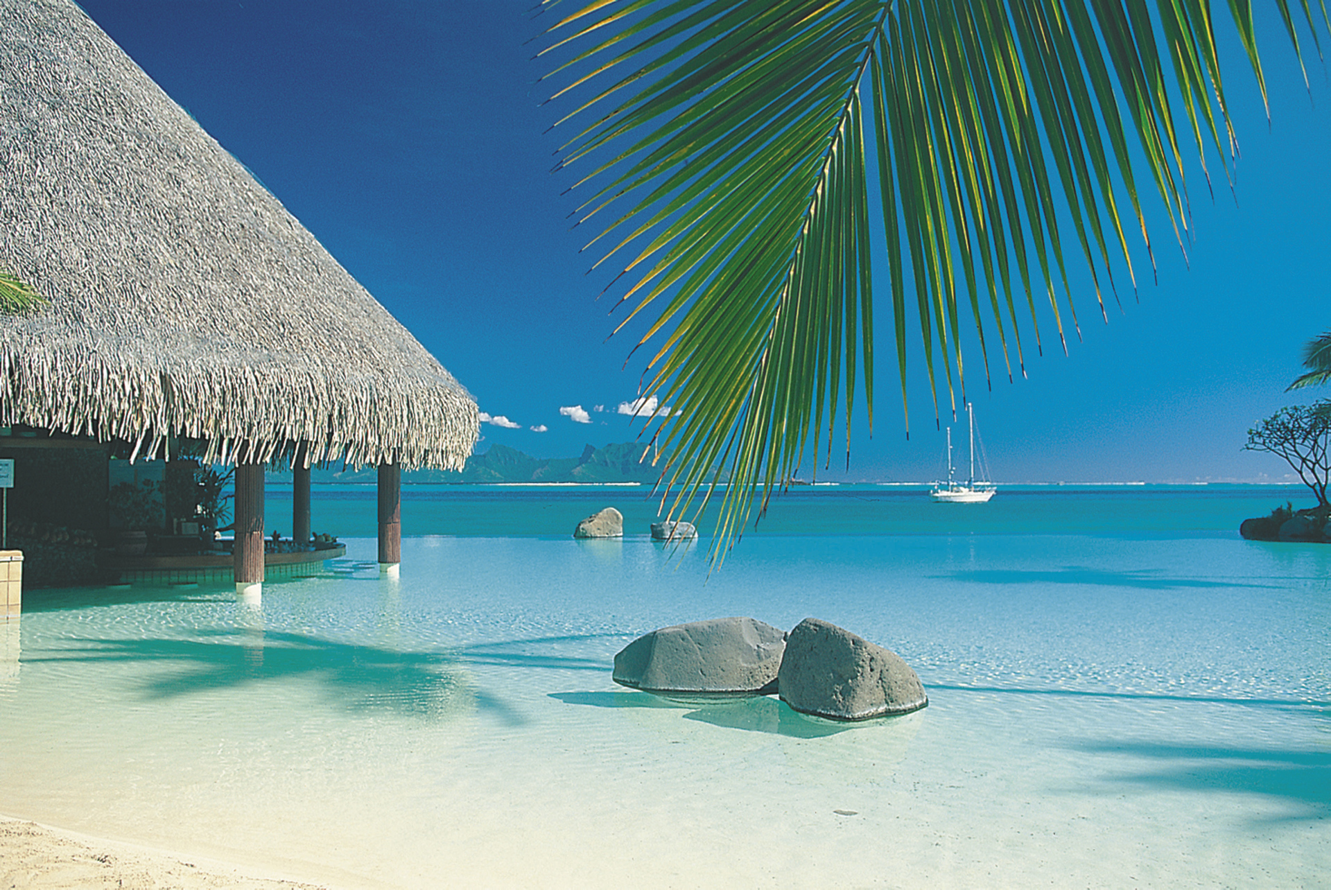 Große internationale Resortanlage mit Blick auf Moorea und allen Annehmlichkeiten.