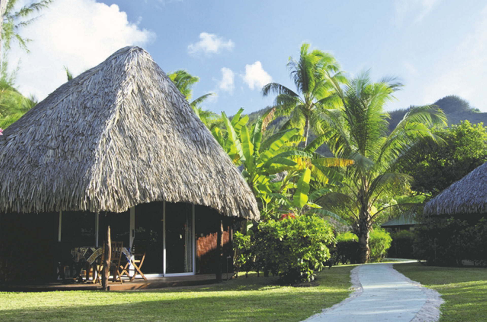 Direkt an einem weißen Sandstrand an der Nordwestküste von Moorea, 45 min vom Flughafen.