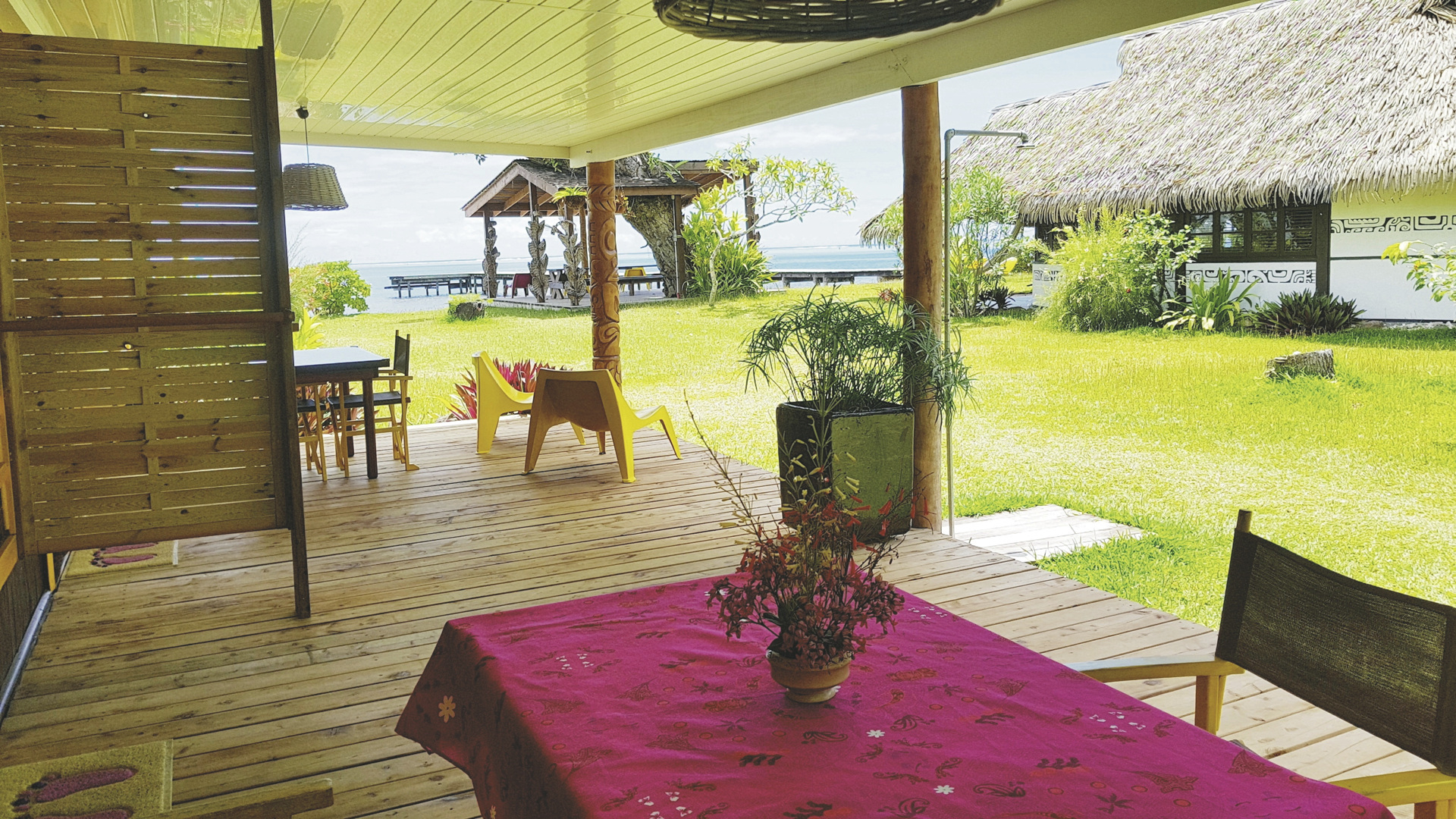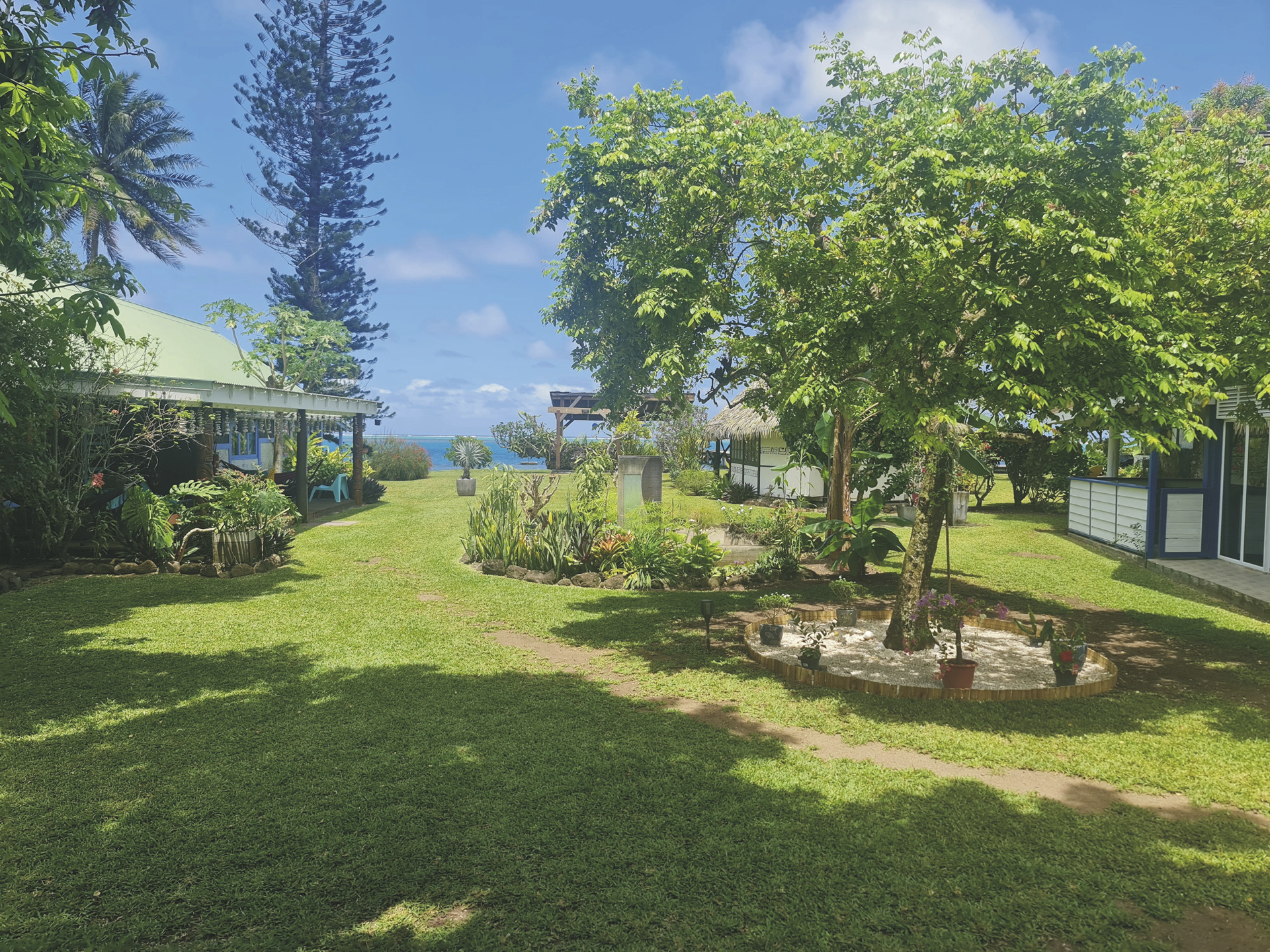 Die kleine Anlage lädt zum Erholen und Schnorcheln ein. Der Garten mit seiner tropischen Flora lädt zum Entspannen ein, vom Steg aus geniesst man herrliche Sonnenuntergänge. Die Anlage wird von sehr aufmerksamen und hilfsbereiten Gastleuten geführt. Kostenlos sind Schnorchelausrüstung, Kanu, Kajak, Fahrräder, Bibliothek und Boule. WLAN kostenlos. Ausflüge werden gerne organisiert. Frühstück wird auf Ihrer Terrasse serviert. Kein Restaurant, aber Catering am Abend möglich.